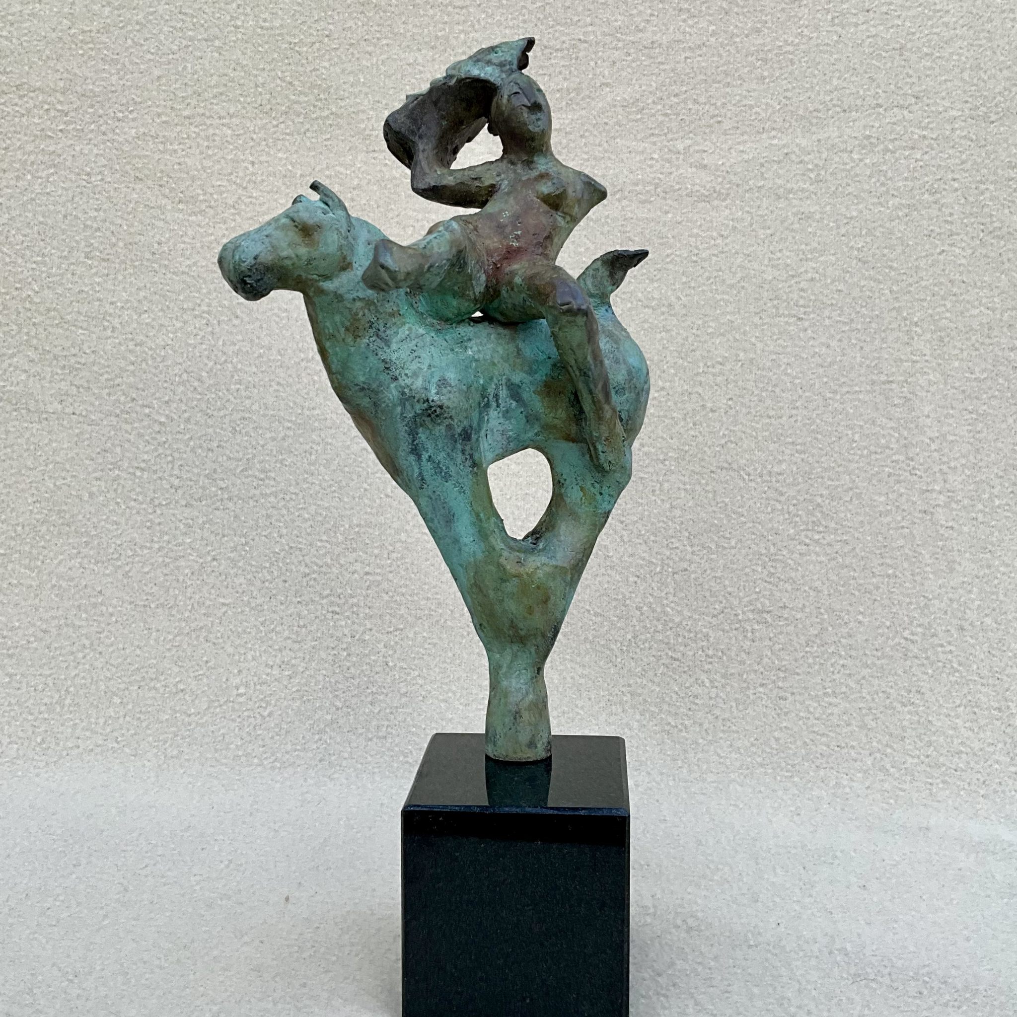 Een Amazone met schild - brons (cire perdue) op granieten blokje (6 x 6 x 6 cm)