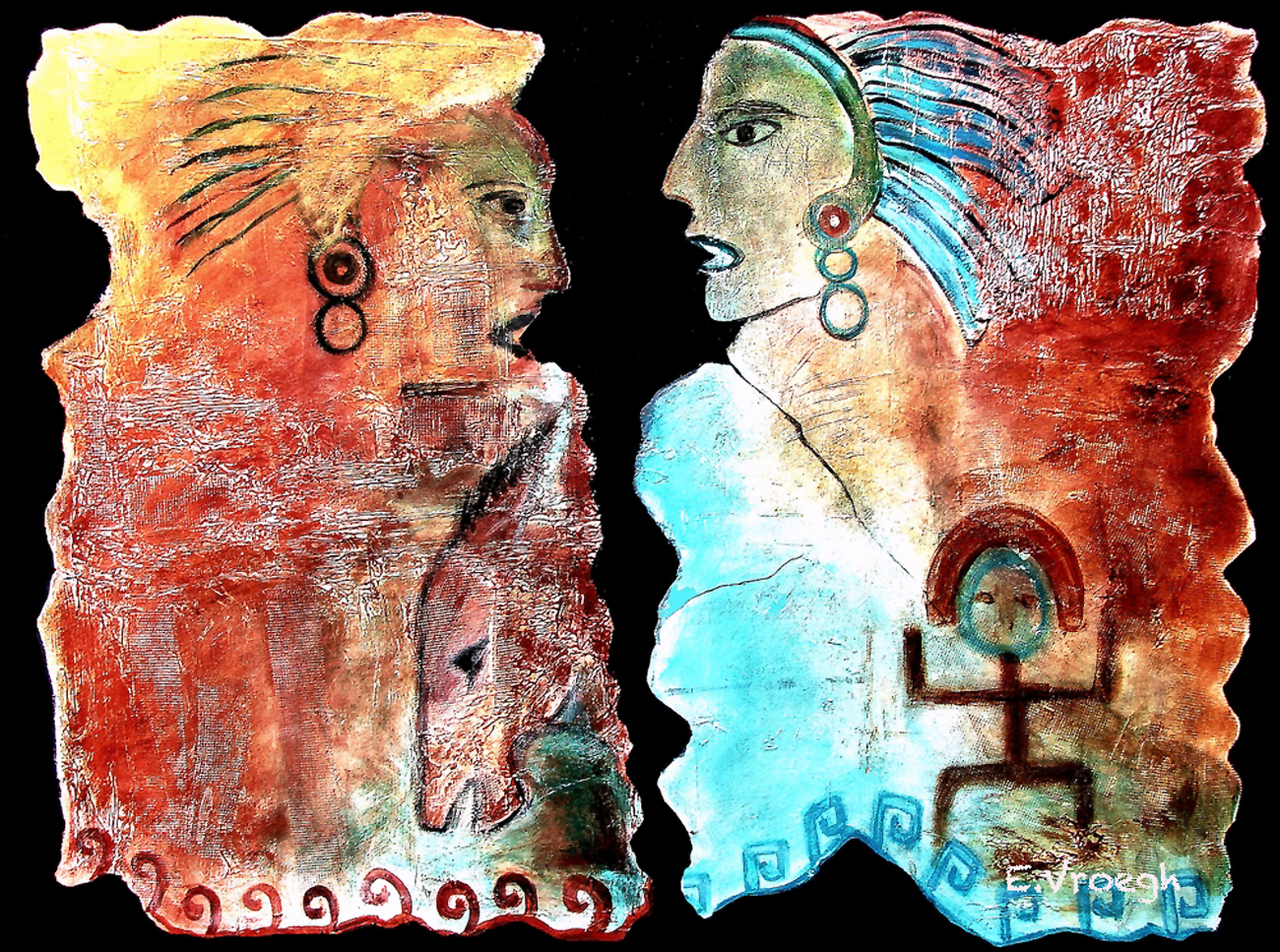 Art Kunst Schilderkunst Groepsportret Indians Paintings Azteken Colombian Style Aztecs Indianenkunst Pre-colombiaanse Pre-