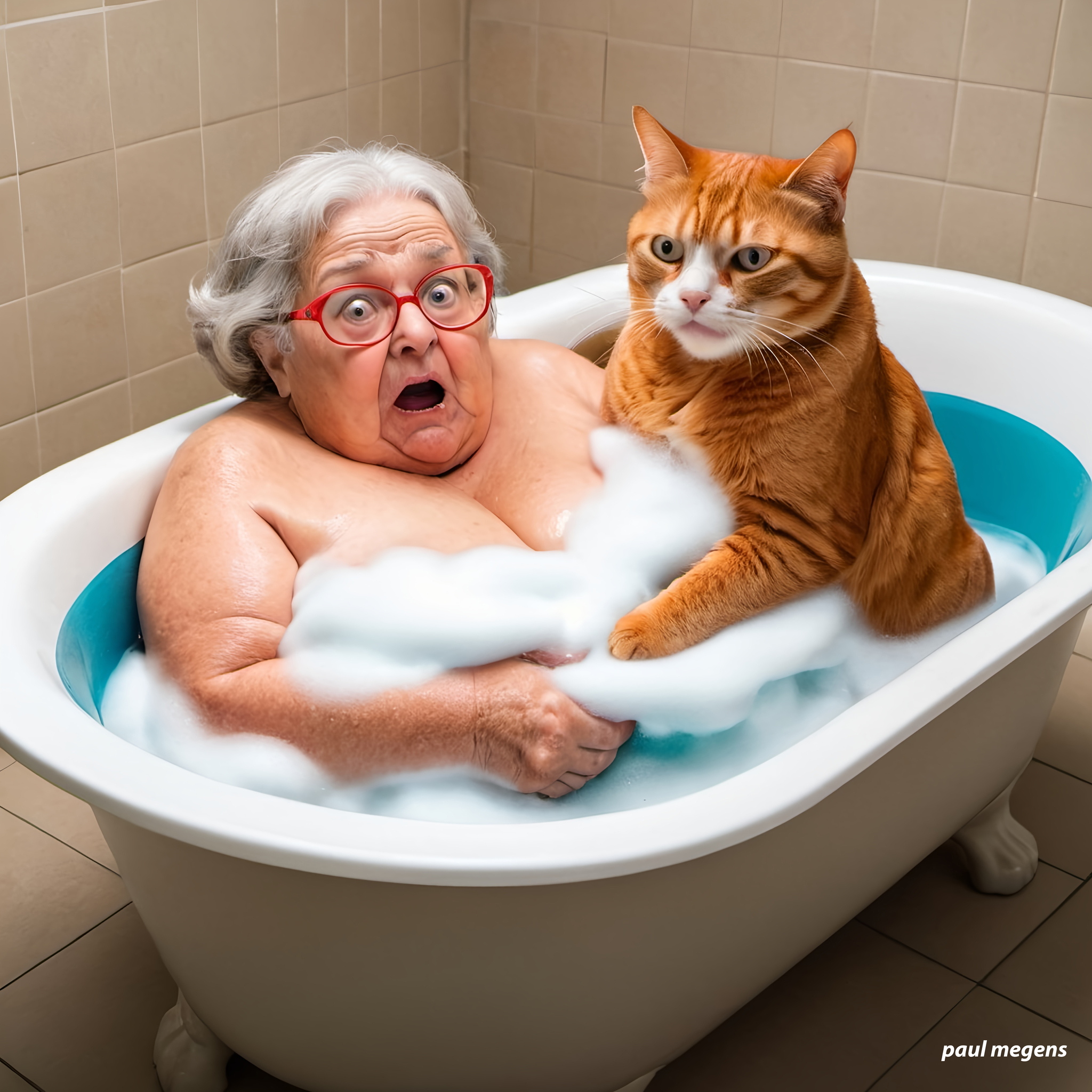 Poes Oma Cat Digital Bad Bath Ai Grandma Nft