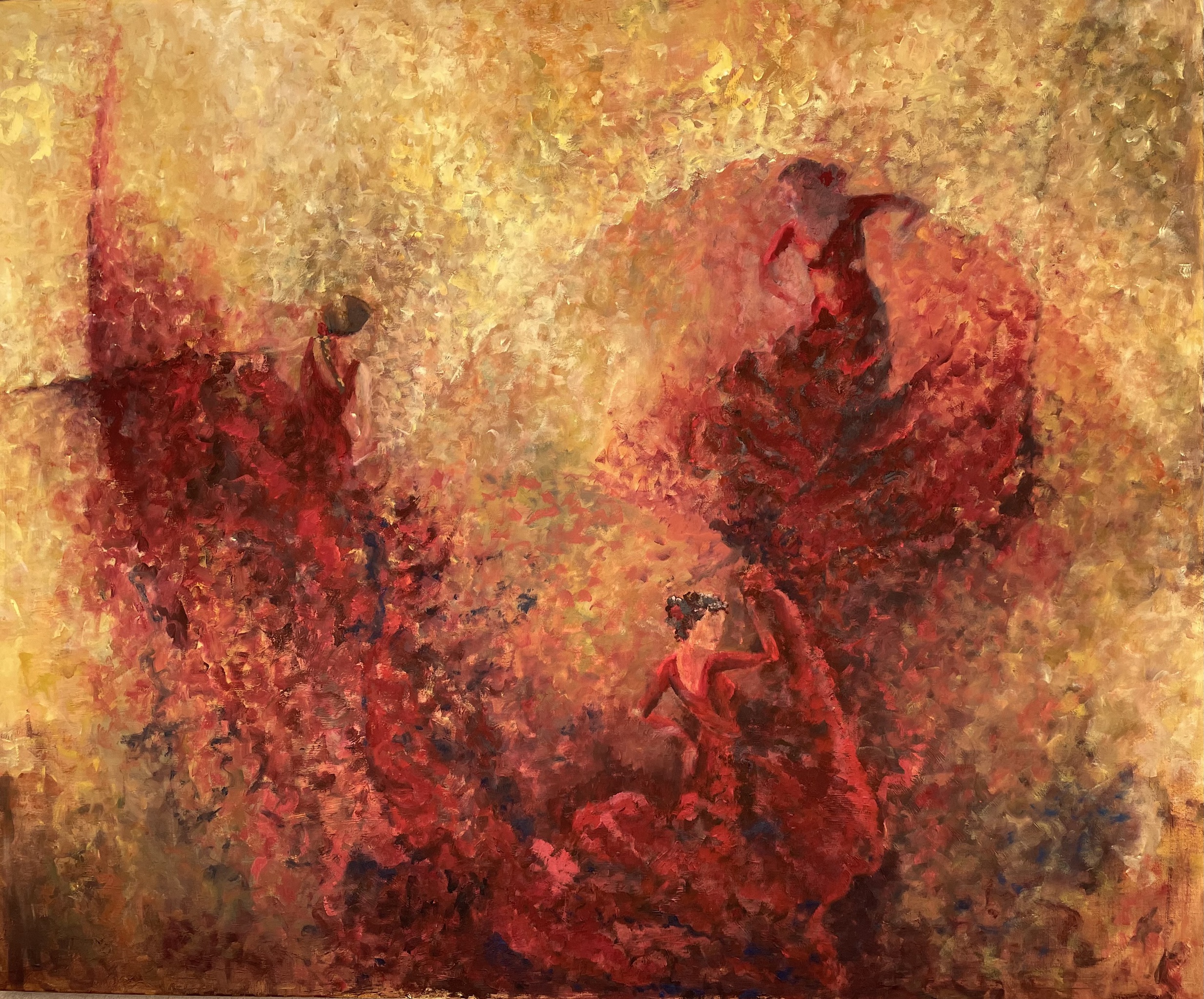 Heerlijk om een gevoel met een eigen draai aan de werkelijkheid op een abstraherende wijze op het doek te zetten.