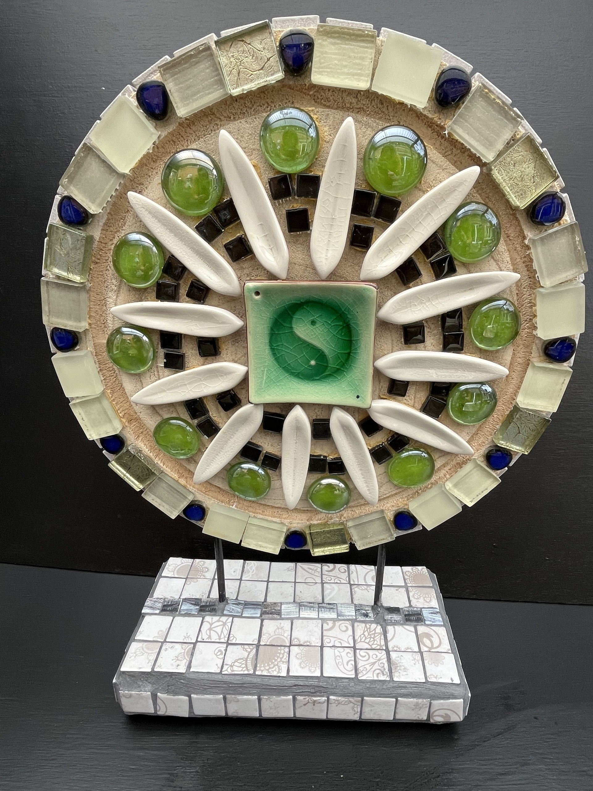 Kleurrijke en warme mozaïek gemaakt met liefde. Wij maken samen grote projecten en óók onze eigen stukken. Het verwerken van verschillende materialen is een belangrijke kenmerk van ons werk.