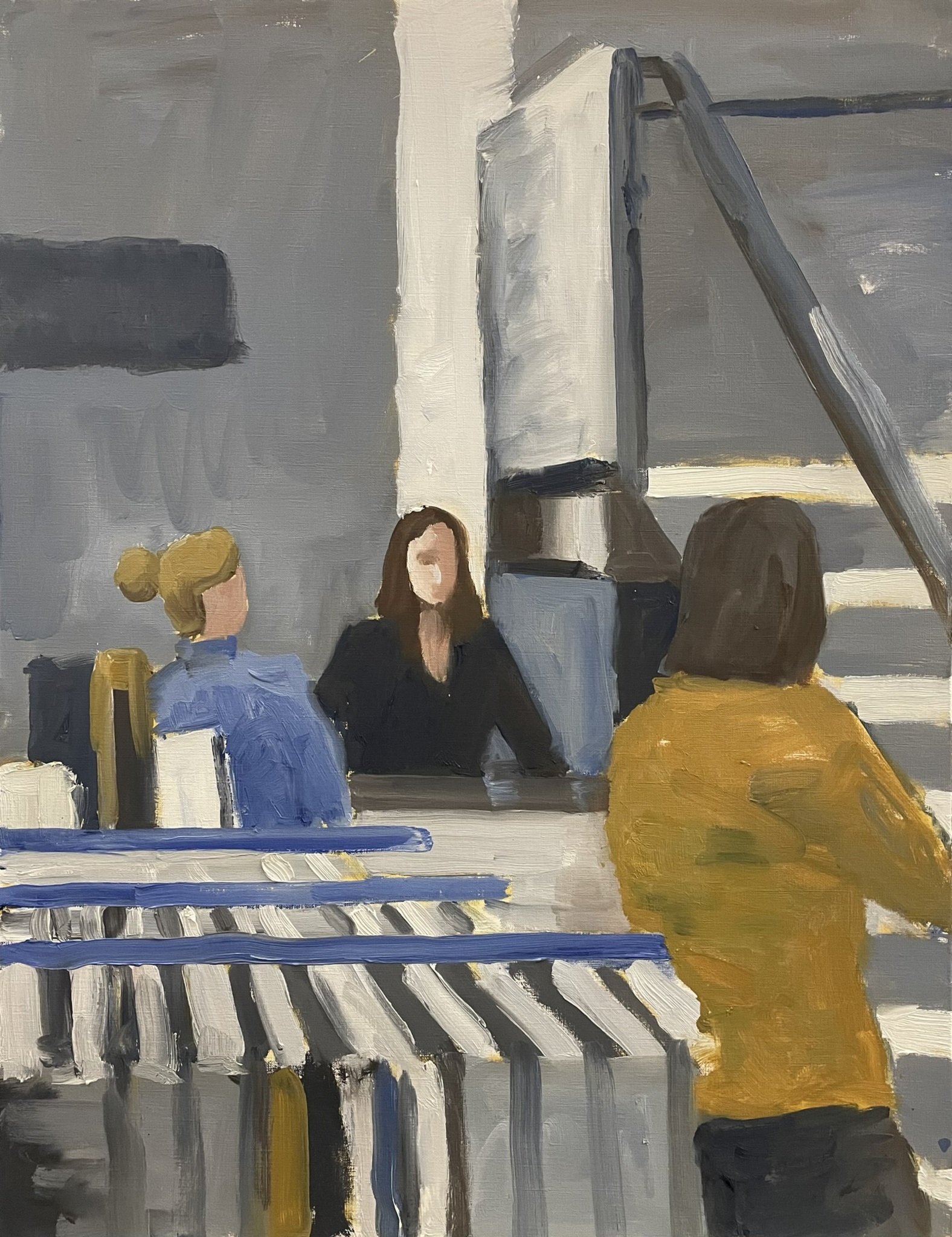 Ik schilder graag mensen in allerlei situaties, binnen of buiten.