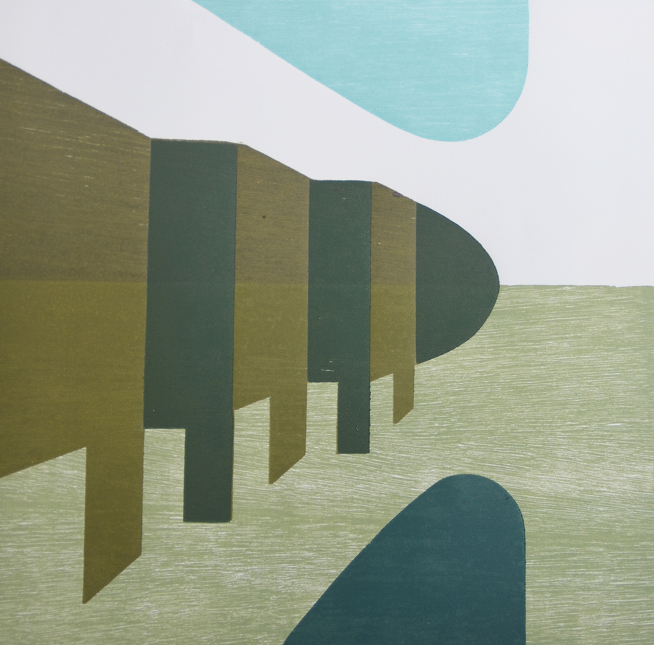 Houtdruk - sjabloondruk op papier, 5 kleuren, oplage 3.