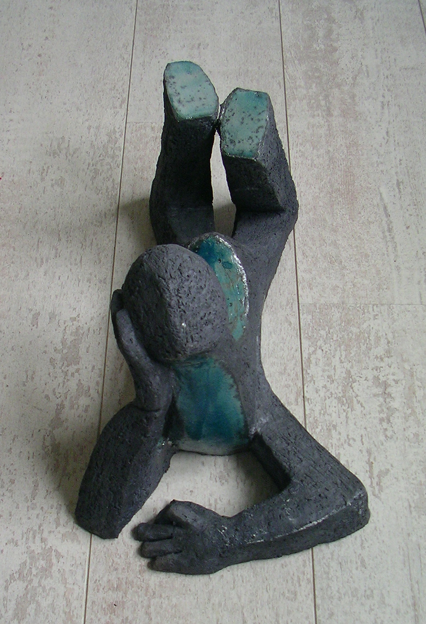 Klei, grof, gevormd, geduwd, geschraapt. Ruwe huid, schrale kleur en soms gecombineerd met metaal. Hiermee kan ik mijn ideeën en gedachten verbeelden. Mijn beeld vertelt, de kijker luistert.
