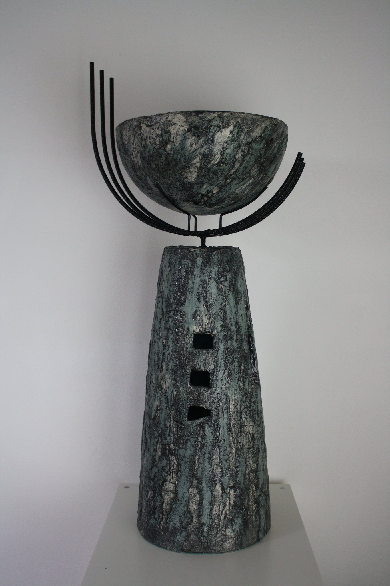 Klei, grof, gevormd, geduwd, geschraapt. Ruwe huid, schrale kleur en soms gecombineerd met metaal. Hiermee kan ik mijn ideeën en gedachten verbeelden. Mijn beeld vertelt, de kijker luistert.