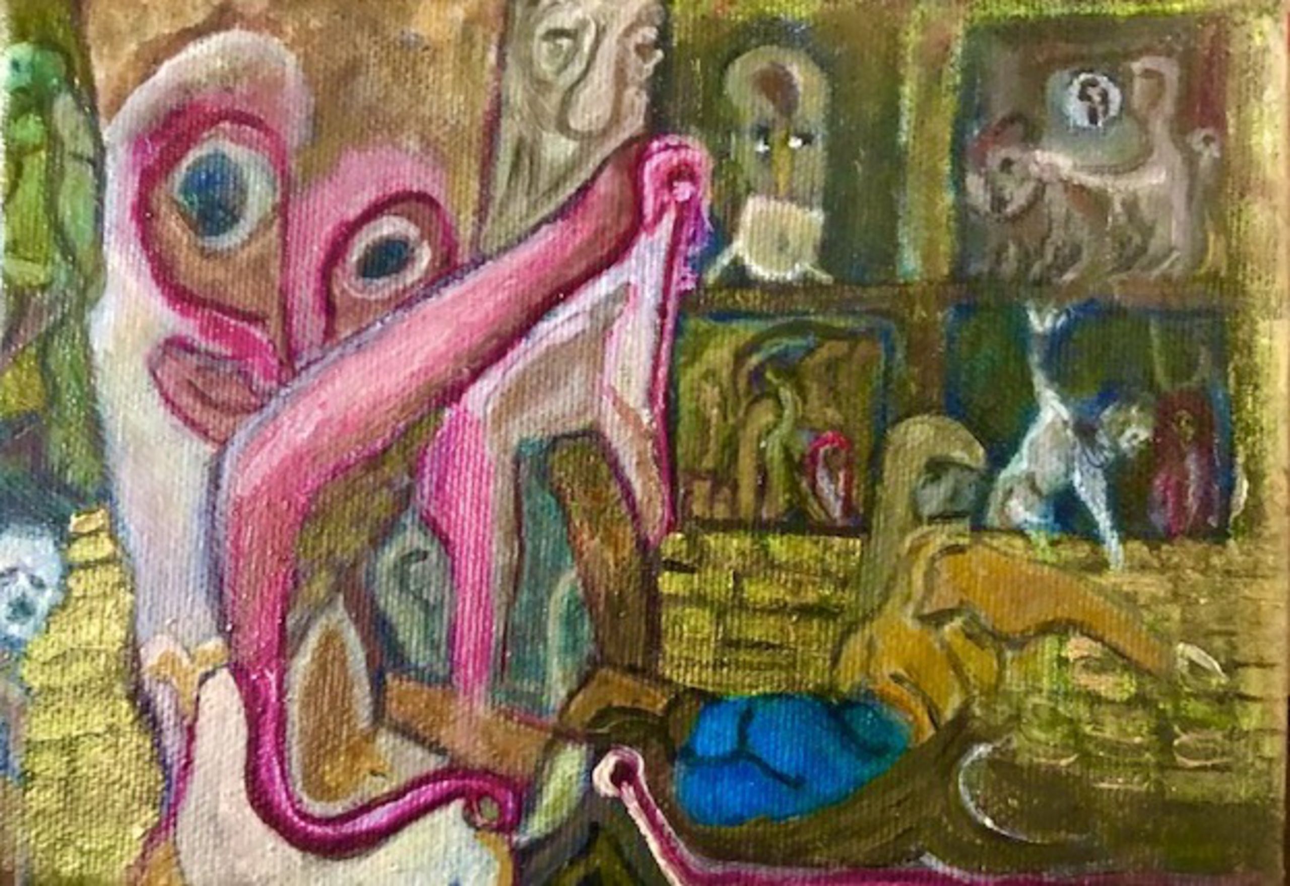 Toen ik het originele olieverfwerkje uit 2015 maar weer eens onder handen nam werd de chaos pas compleet. Misschien is het de verbeelding van oorlogen die de helft van onze planeet blakeren.