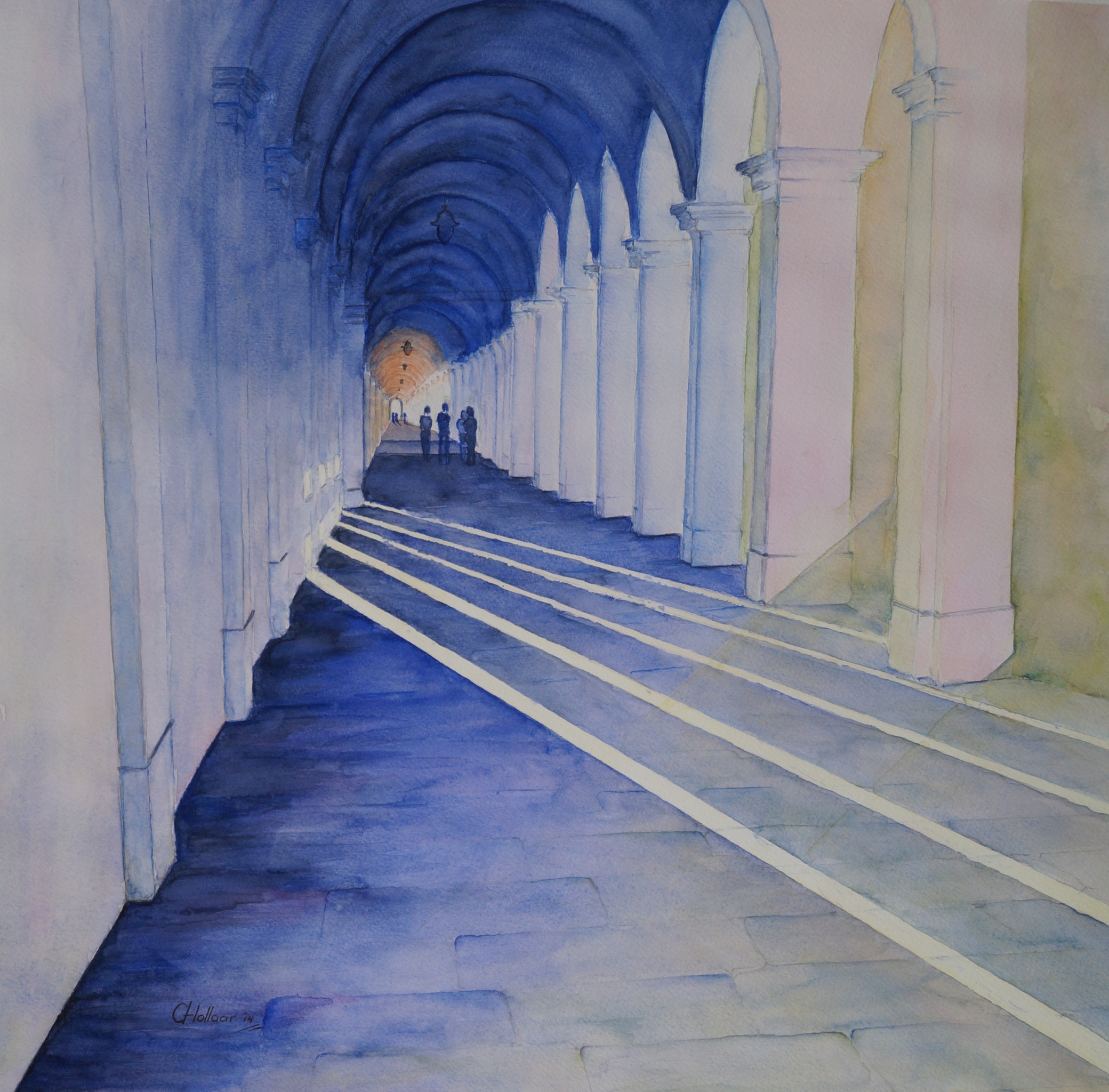 Colonnato monumentale. Deze aquarel gemaakt na een bezoek aan Italië 60 x 63 cm. inclusief passe partout