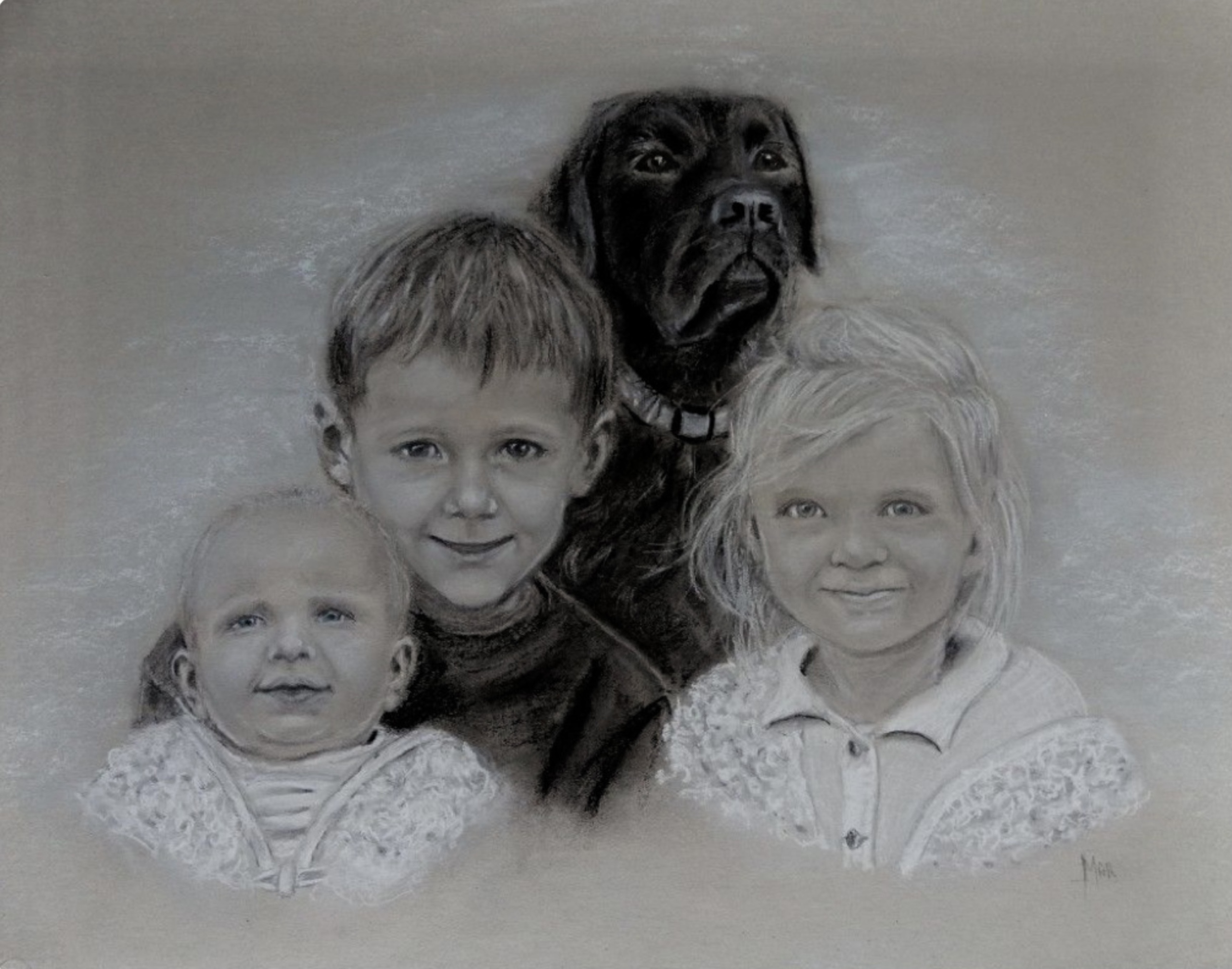 Portretten mens en dier grafiet,houtskool en soft pastel Autodidact