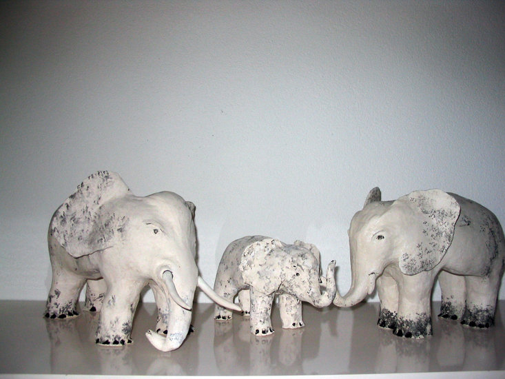 Deze olifanten zijn in mijn eerste jaar van werken met klei gemaakt.Het zal wel te maken hebben gehad met mijn passie voor dieren dat dit mij redelijk gemakkelijk afging.