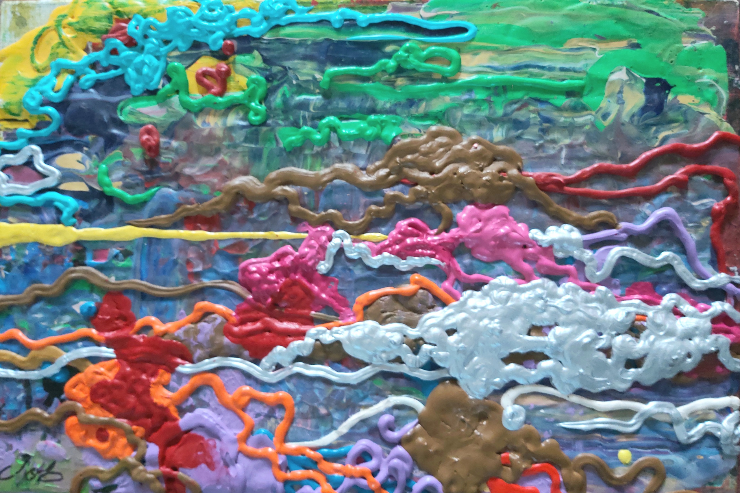 Abstract Landschap Regenboog Kleuren Schilderkunst Acrylverf Fles Vanuit De Fantasie Werelden Job Planeten Kosmos Gelaagdheid Expressionistische Riem Levensvormen Onderbewustzijn Cox Buitenaardse Geschetst Sterrenstelsels Multiversum Destructief