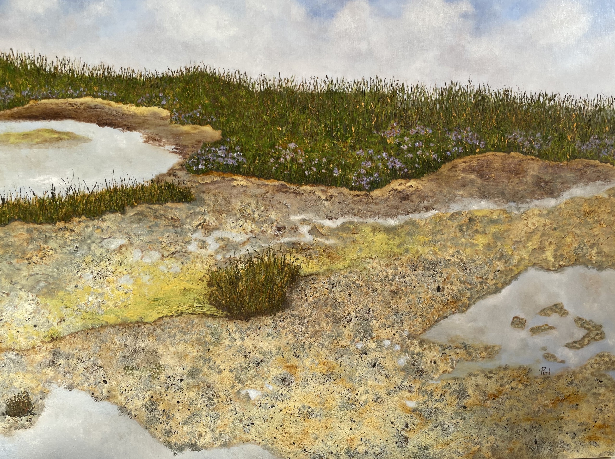 Ik schilder de landschappen en zeegezichten in mijn directe omgeving. Na vele studies in het veld maak ik nu grote doeken in mijn atelier. Realistisch, in olieverf.