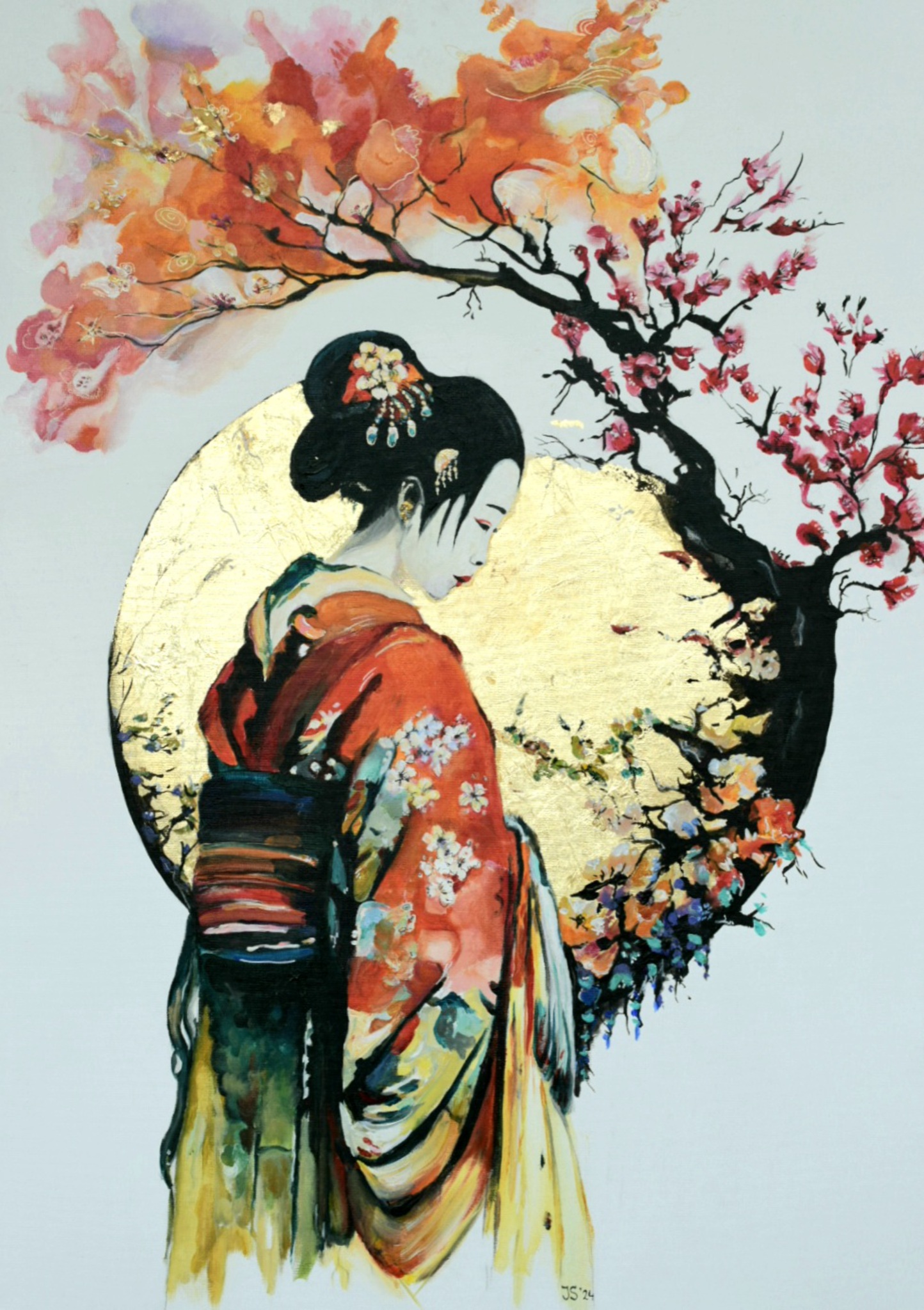 Nog een werk met bladgoud . In acrylverf en acrylinkt. Dit schilderij is alleen als reproductie te koop op werkaandemuur.nl, in vele maten en materialen