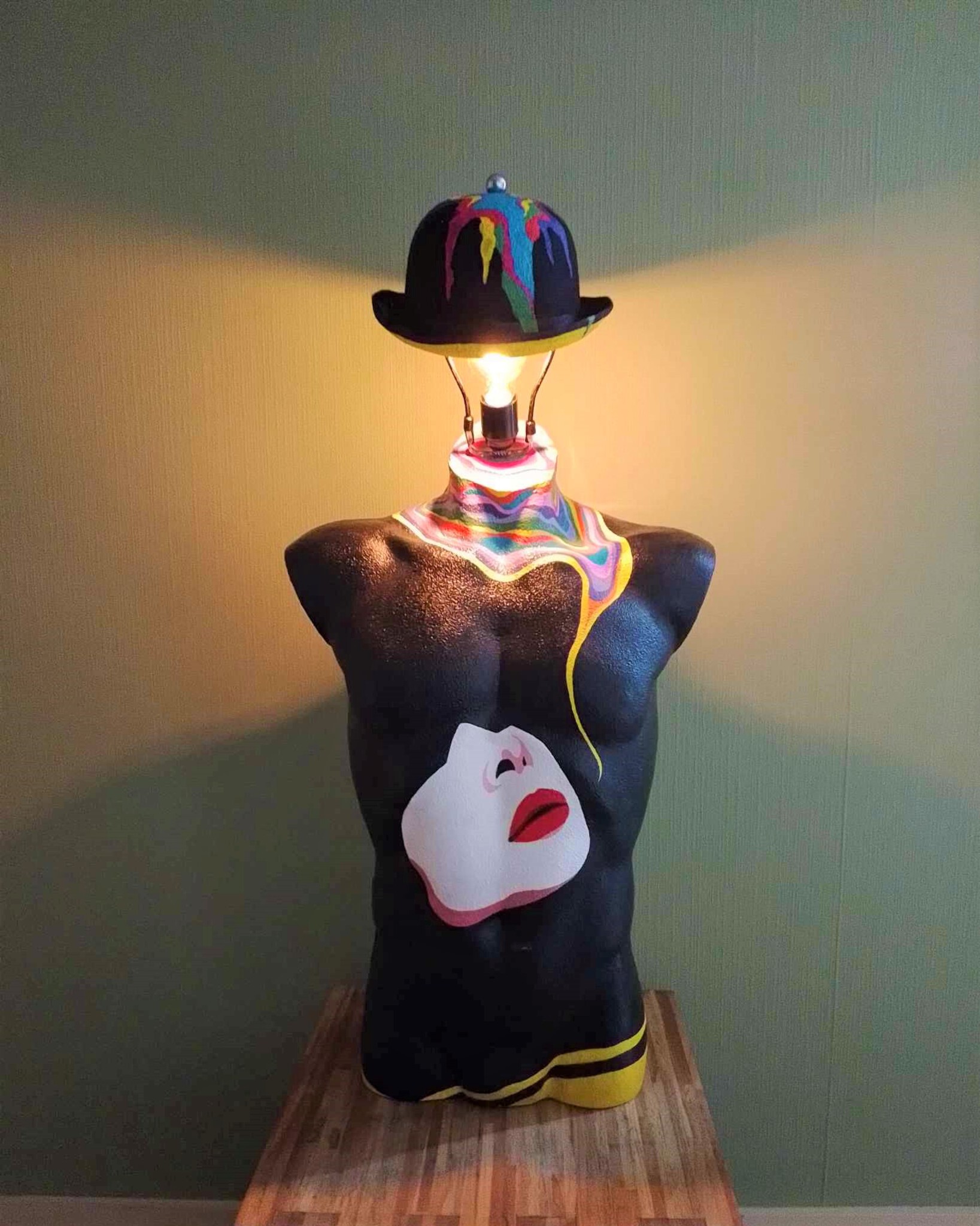 Heren torso lamp geheel beschilderd met acrylaat verf