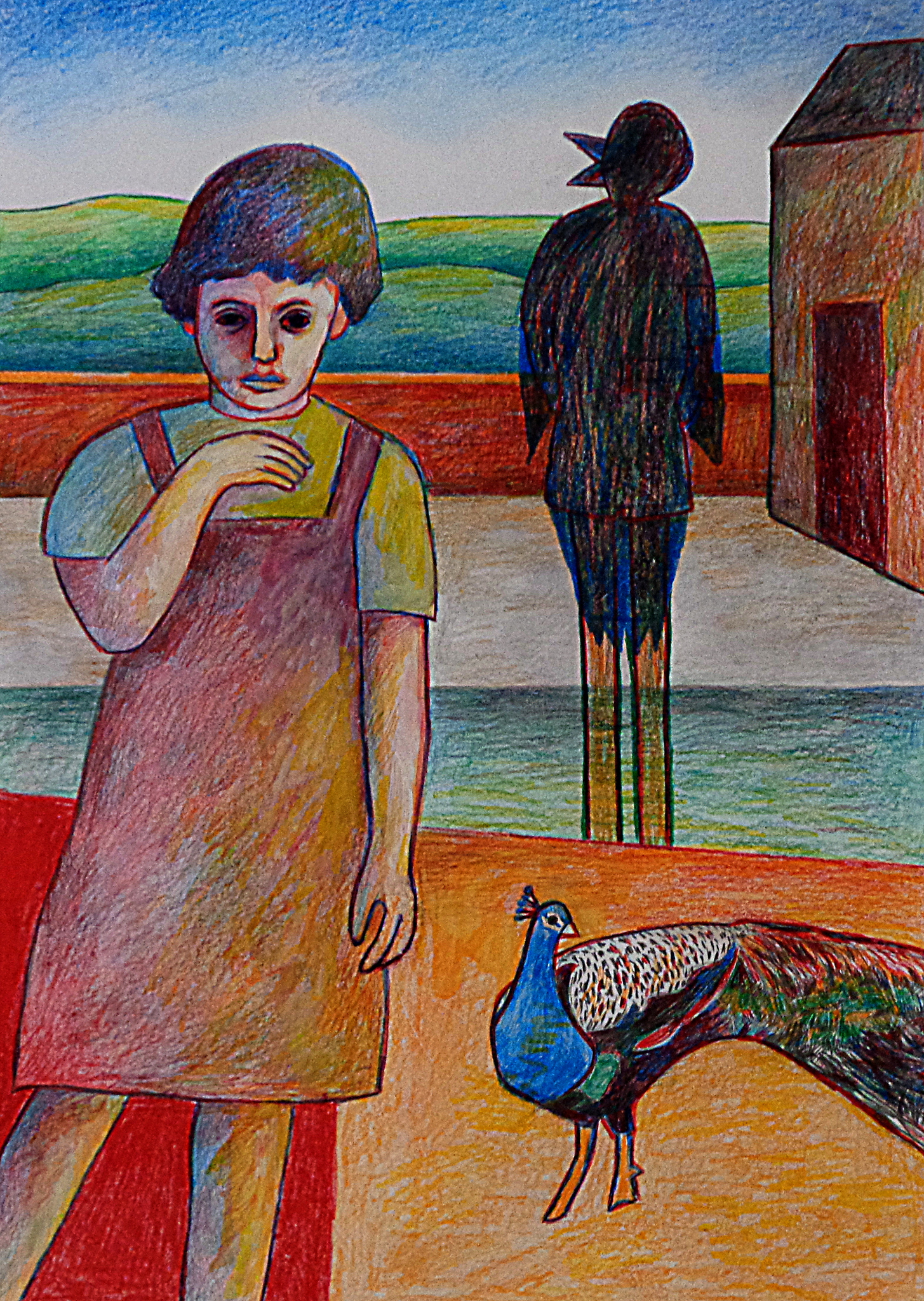 Vrij werk in kleurpotlood en stift