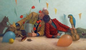 Na het voltooien van een grafische opleiding en jarenlange zelfstudie is Theo Leering sinds enige tijd full time werkzaam als beeldend kunstenaar. Zijn stijl valt moeilijk in één hokje te plaatsen maar is altijd figuratief. Het beweegt tussen realistisch en absurdistisch en is vaak melancholisch van toon. Achter deze melancholie schuilt te allen tijde een sprankje hoop. De thema’s lopen sterk uiteen al speelt muziek in veel van zijn werk een belangrijke rol. In principe kan alles wat op zijn netvlies verschijnt, hoe klein of ogenschijnlijk nutteloos ook, dienen als idee voor een schilderij. In opdracht maakt Theo portretten en muurschilderingen. Daarnaast geeft hij een aantal dagdelen per week les in tekenen en schilderen.