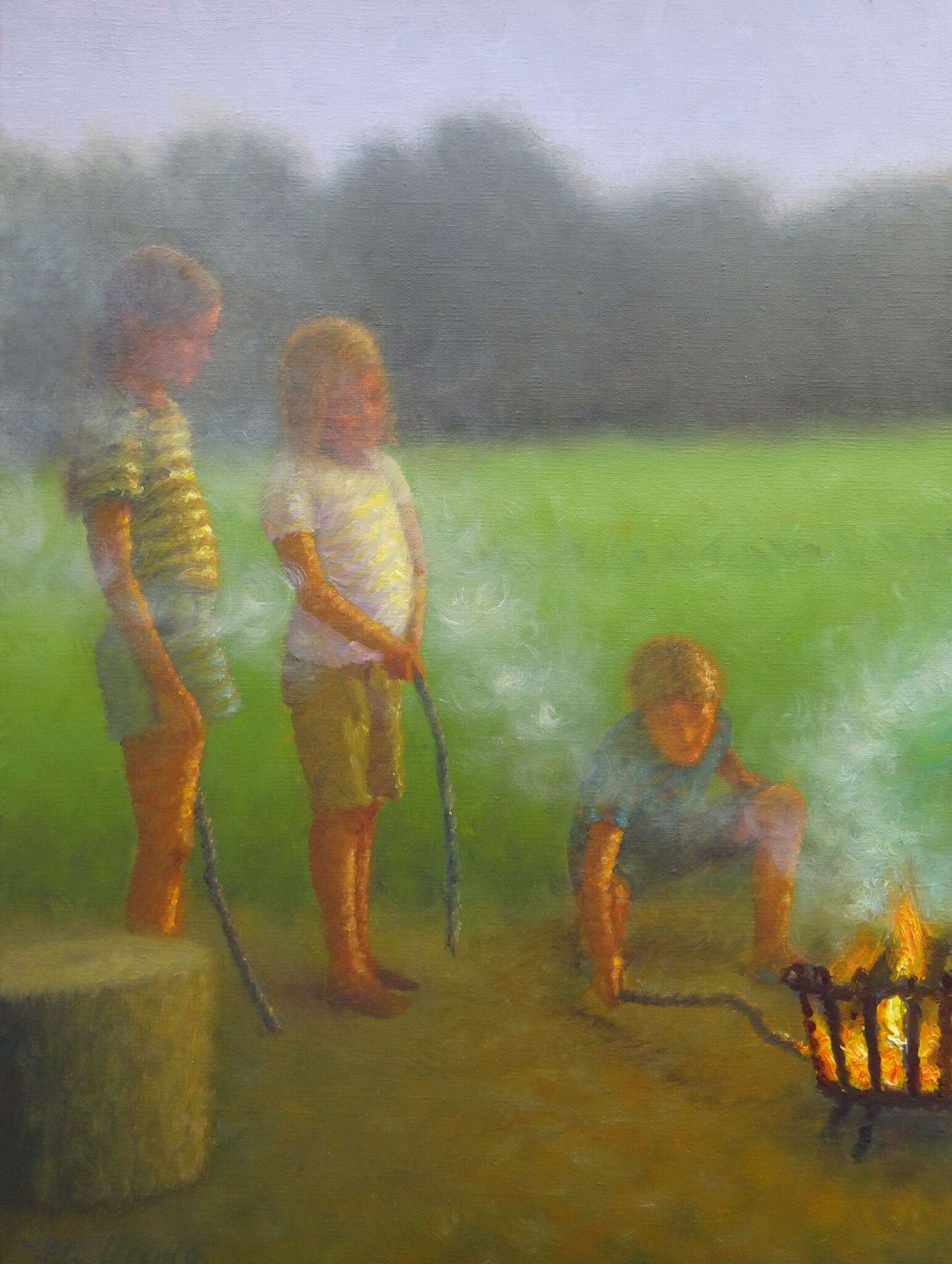 Spelen Kinderen Vuur Vriendschap Barbecue Rook Vrienden Kampvuur Zomeravond Stoken Vuurtje Bbq Fikkie Marshmallows