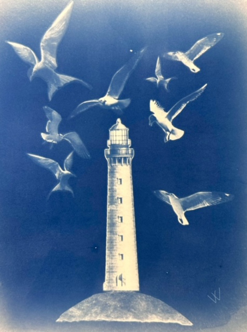 Blauwdruk, vuurtoren met meeuwen