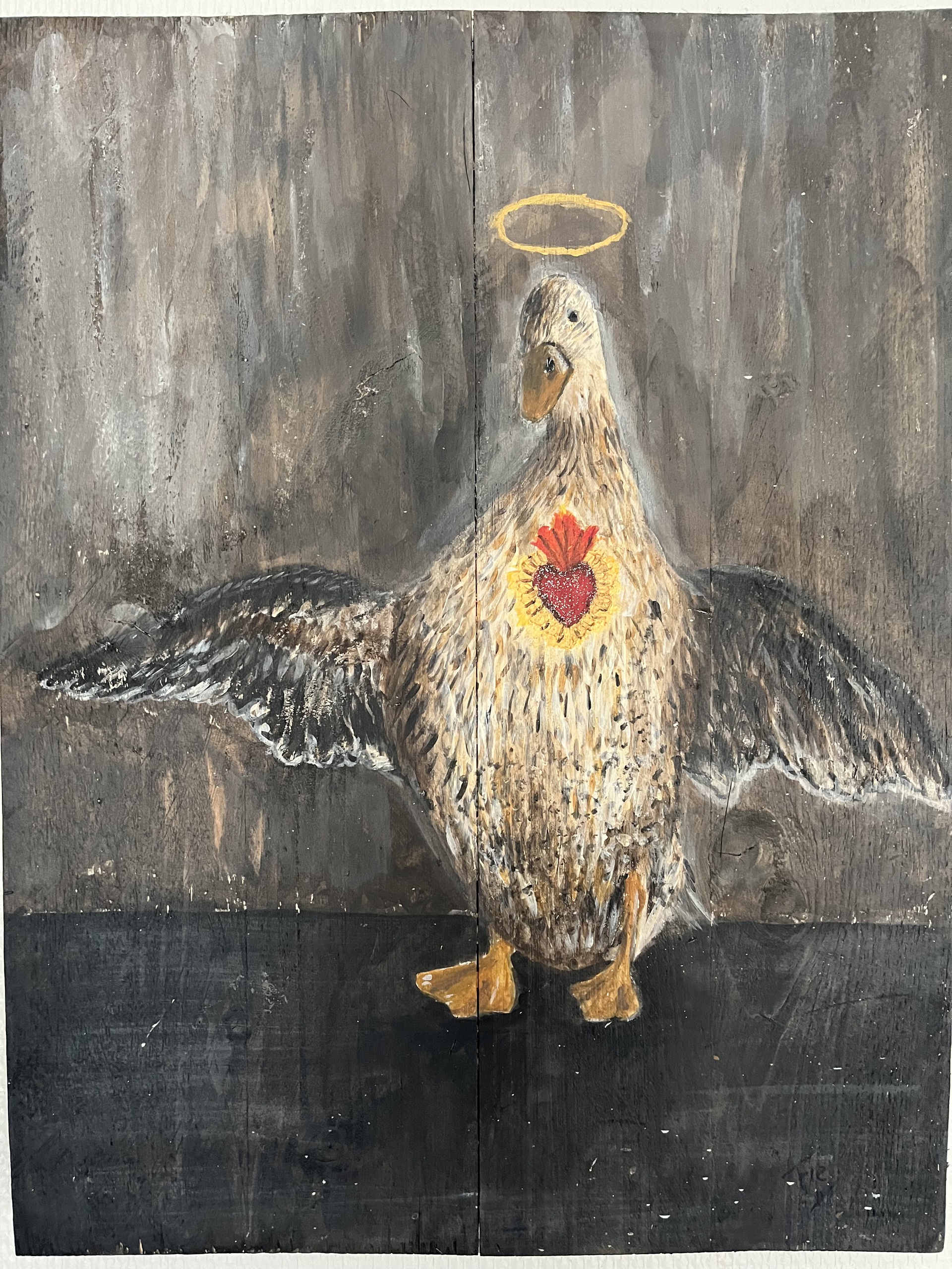 2d Werk Eend Op Steiger Houten Panelen