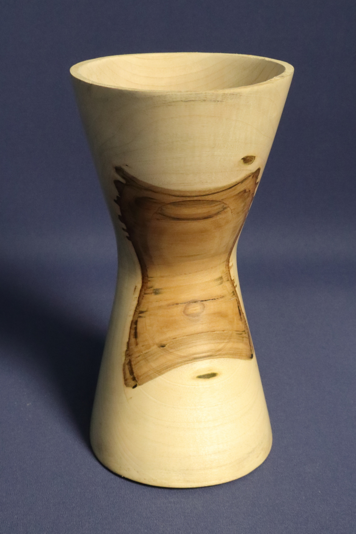 Afmeting: 24xø13cm. materiaal: japanse esdoorn, was. techniek: meerassig houtdraaiwerk.