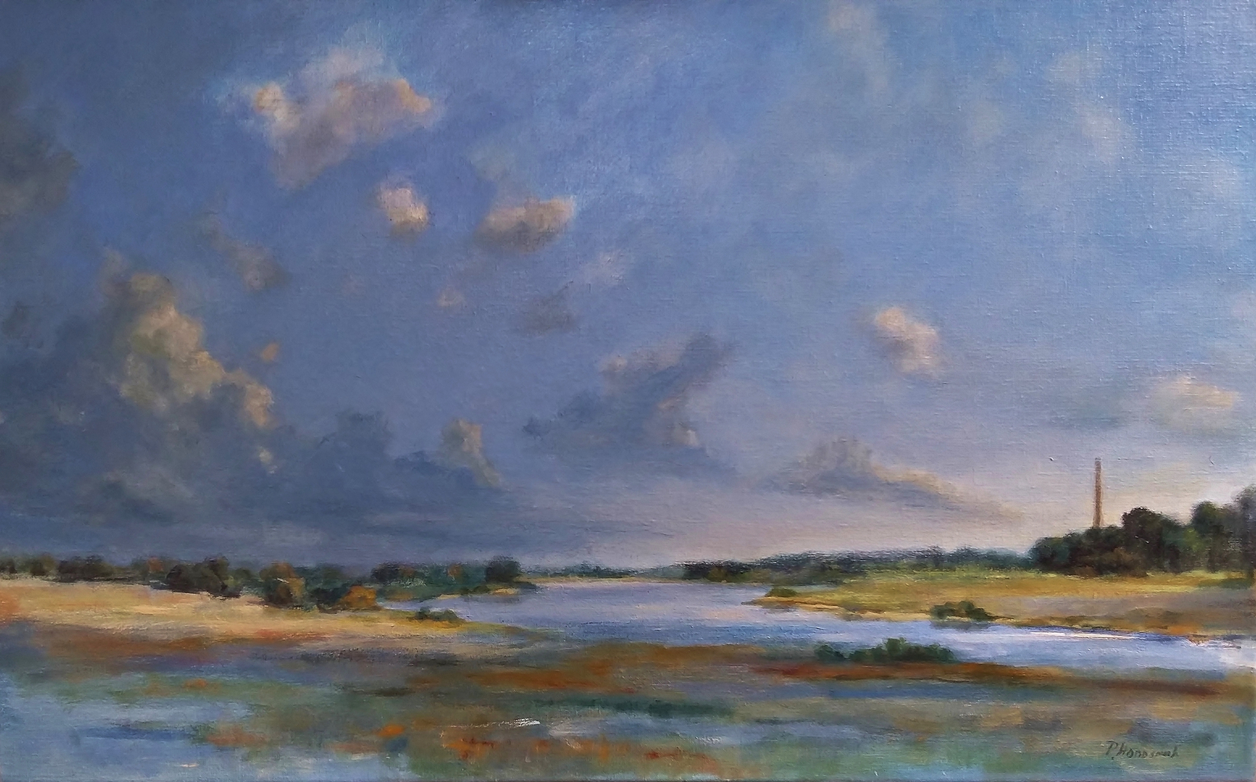 Paula Hondsmerk, schilder van de IJssel, het rivierenlandschap en de Sallandse Heuvelrug . Vooral de dynamische relatie tussen het landschap en de lucht, heeft haar altijd gefascineerd.