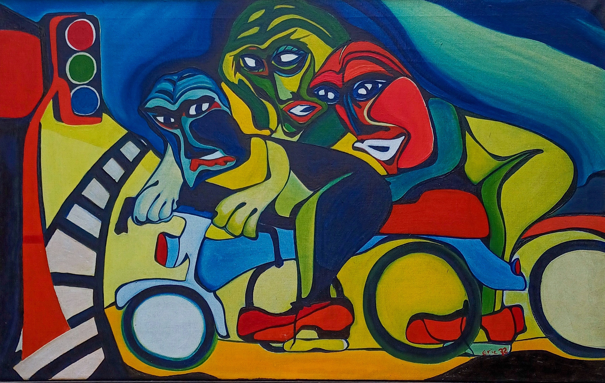 In de periode 1970-2000 ben ik, met grote pauzes, gaan schilderen waarbij fantasie en inspiratie in (on)herkenbare thema’s en figuratieve/abstracte stijl zijn verwerkt. Sinds 2021 heb ik het penseel met veel energie weer opgepakt.