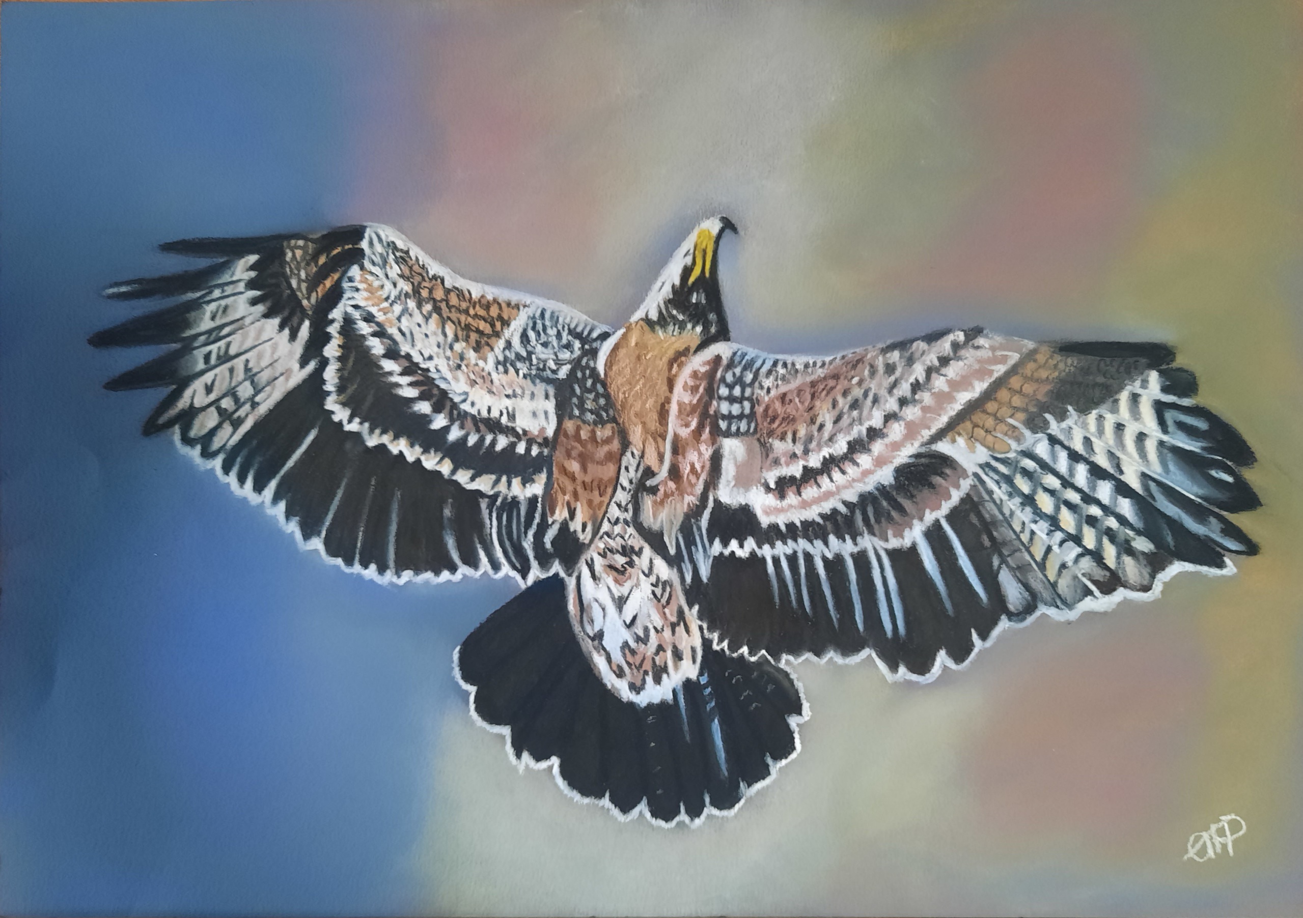 steenarend getekend met pastel, ingelijst met passe partout