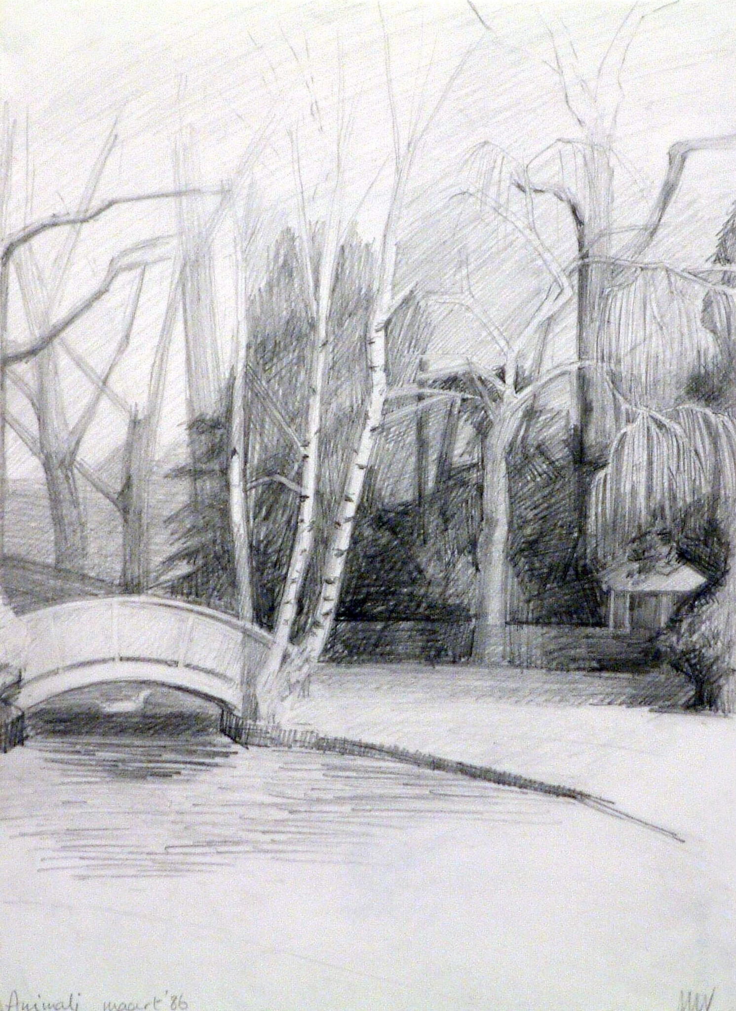Water Potlood Tekening Bomen Drawing Trees Berk Pencil Birch