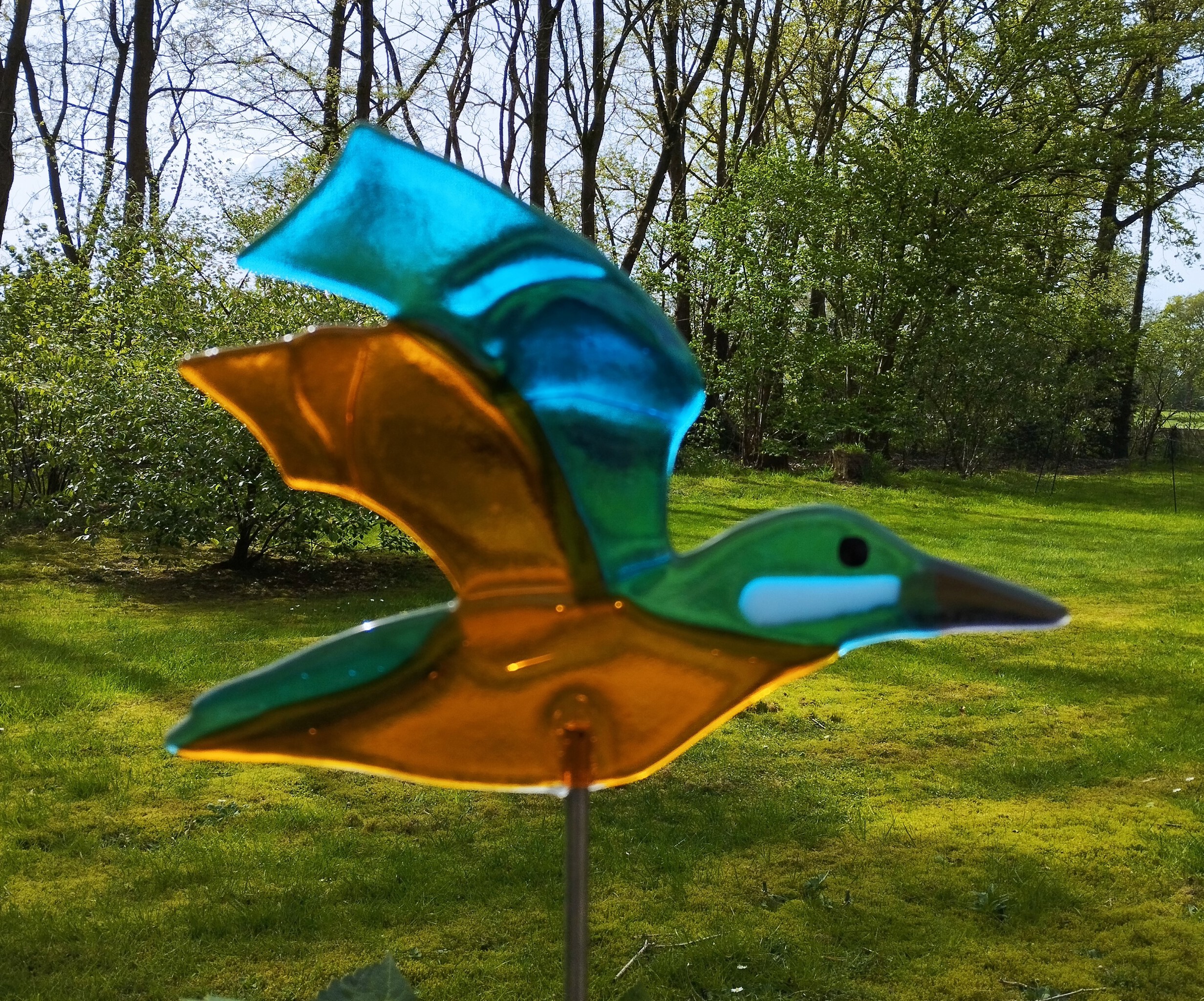 Glasversmeltingstechniek. Dit object staat op een rvs pin van 1.20 meter. Kan niet per post worden verzonden.