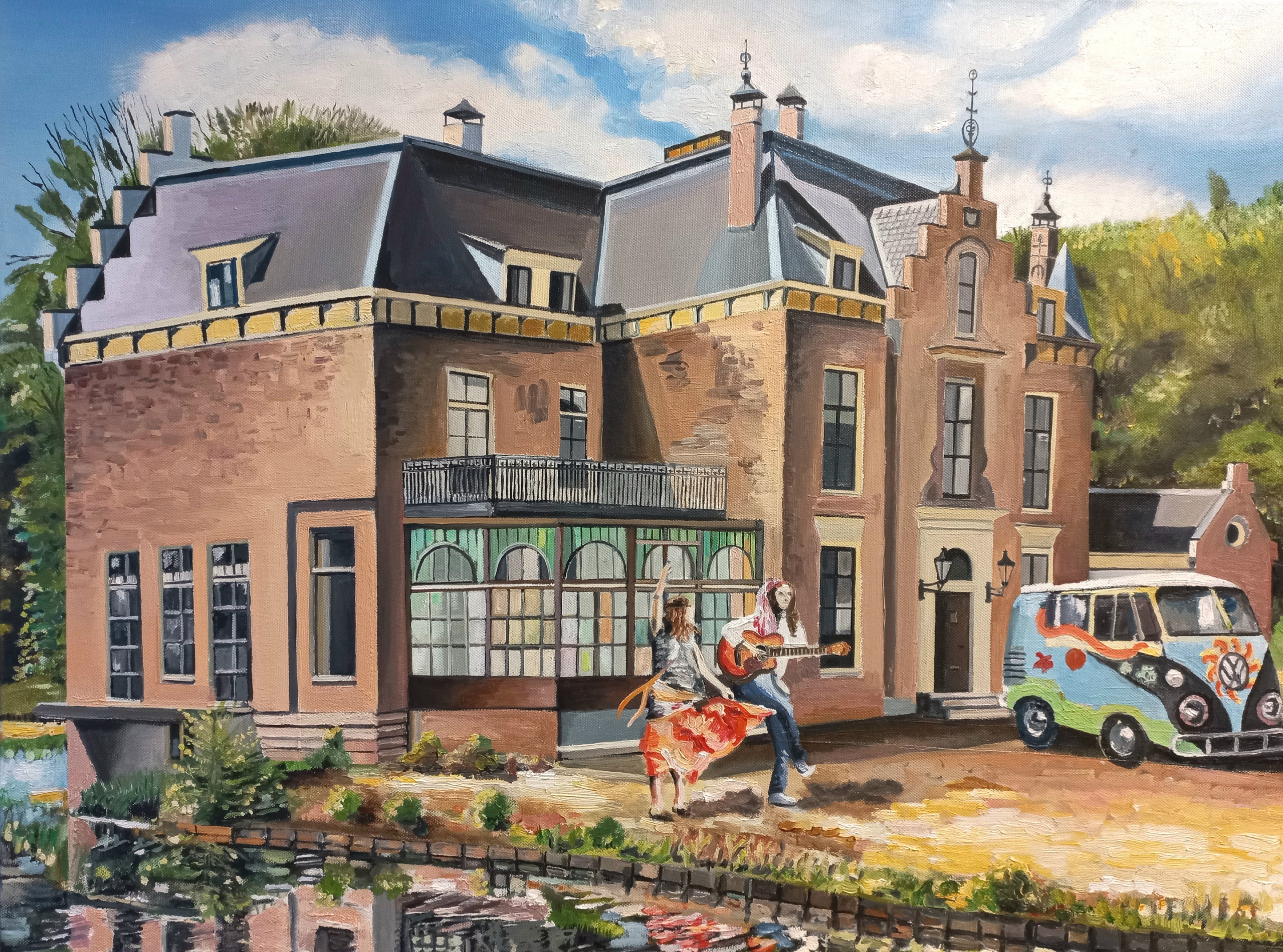 Schilderij Olieverf Doek Op Met Kasteel Em Hippies Kunstenaar Peter Boonstra Almere Kunstschilder Hippiebus Vw 2025