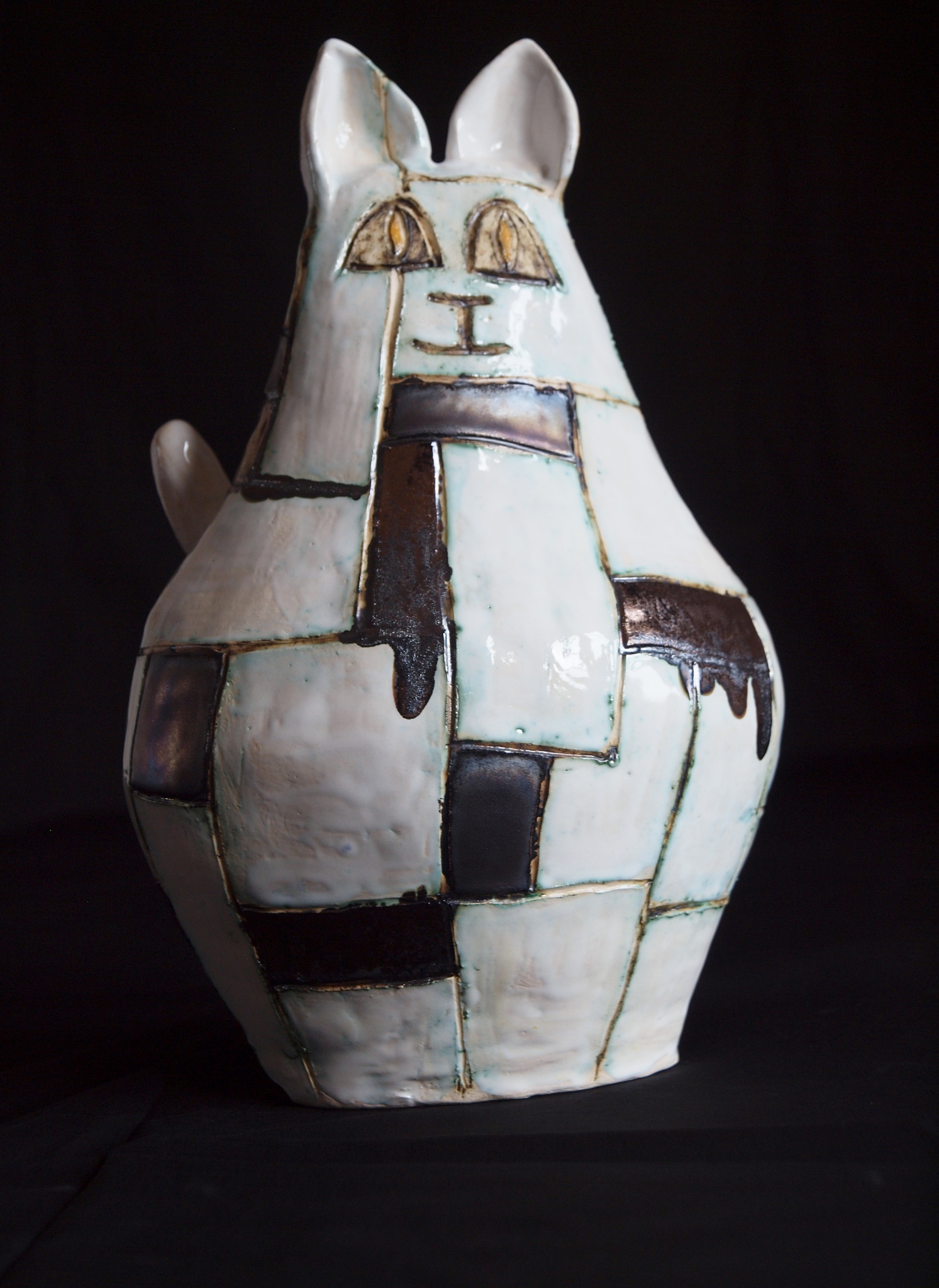 Wit Zwart Bruin 3d Dier Klei Kat Poes Keramiek Aardewerk Lapjes Handgevormd