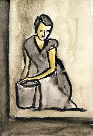 Dienstmeisje aan het werk in London 1937, naar een foto van Bill Brandt