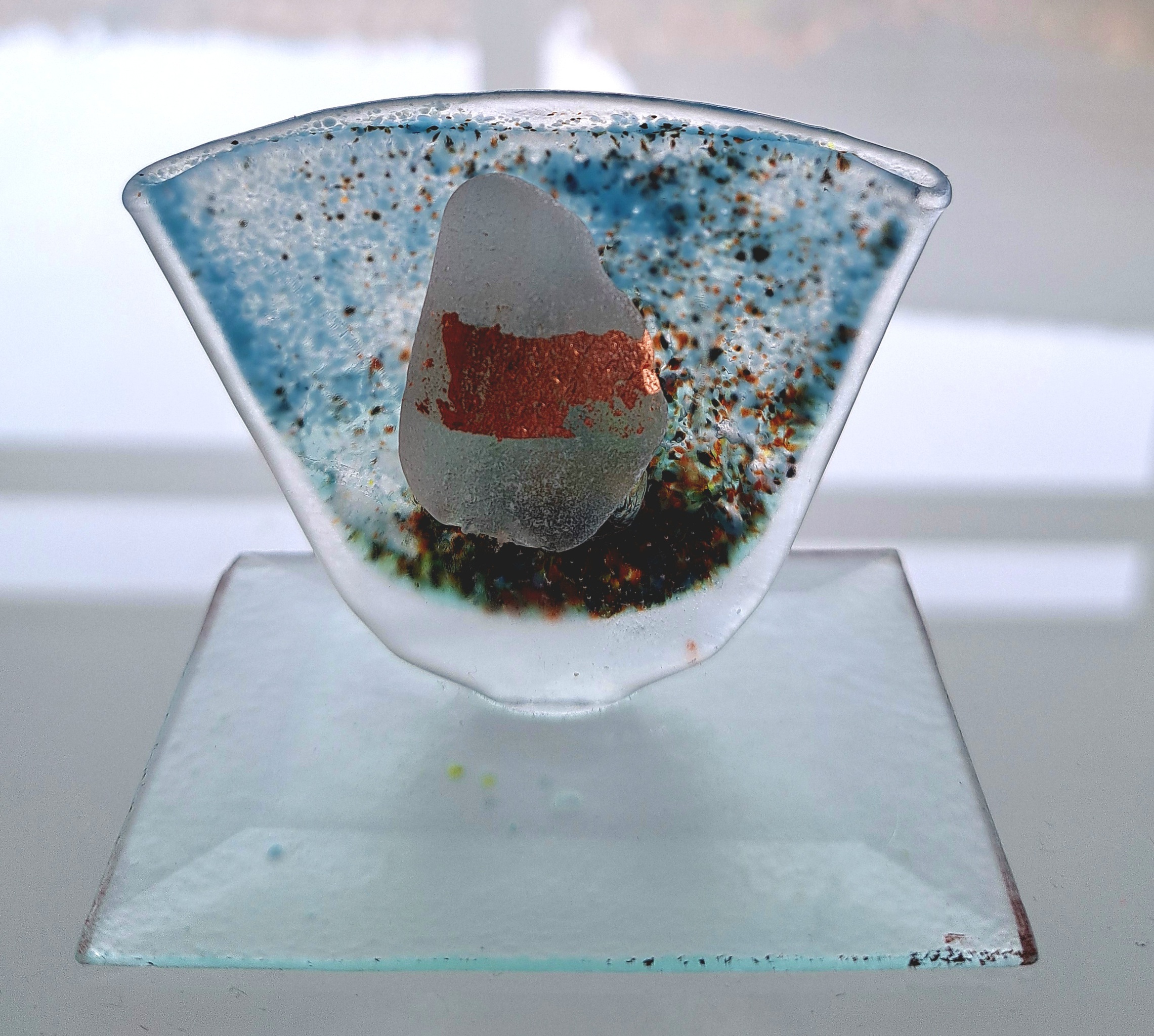Uit de serie recycling. Met bladgoud en zeeglas.