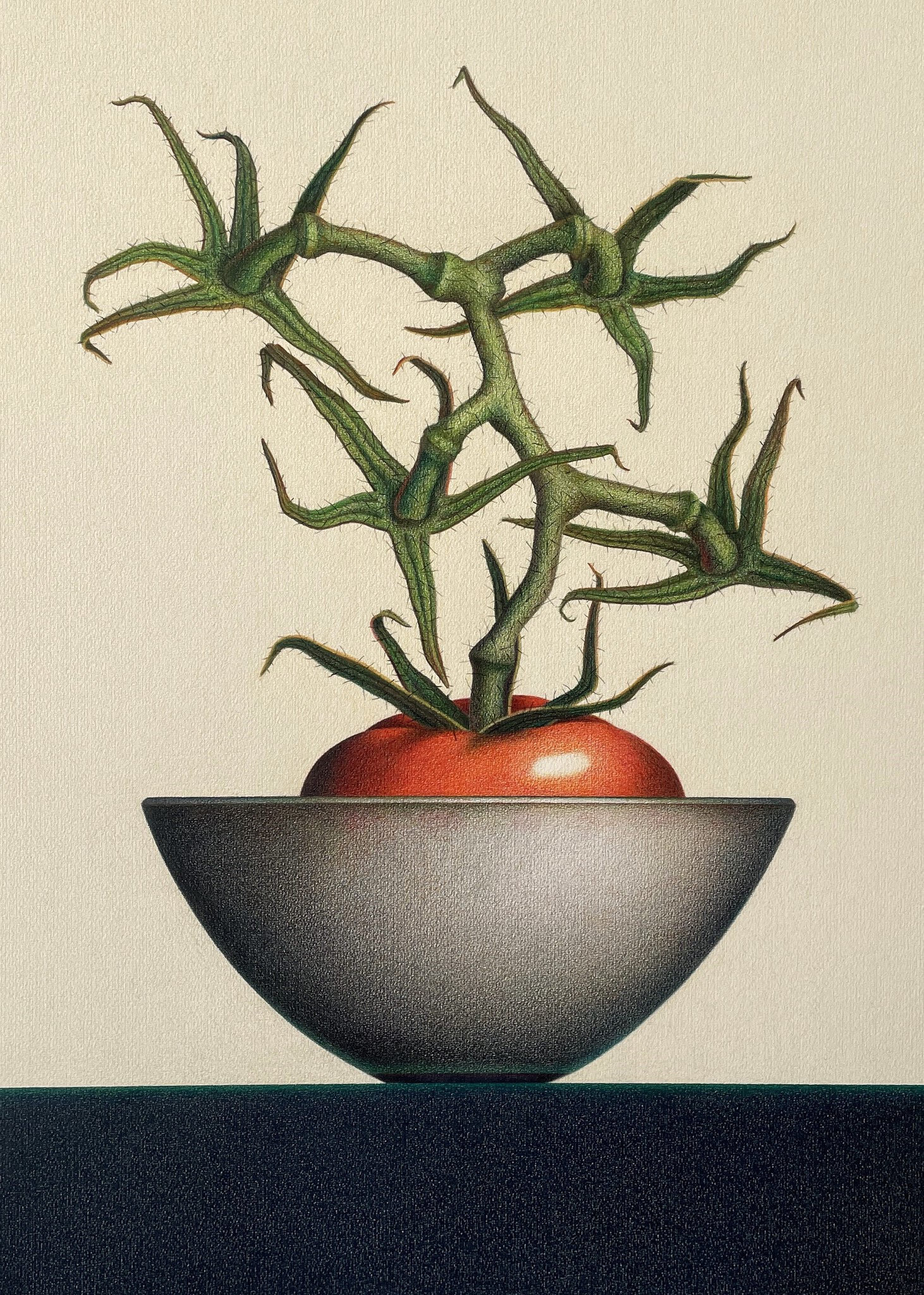 Een kleurpotloottekening uit de serie ' Fruitschalen ' Lijstmaat 80 x 60 cm
