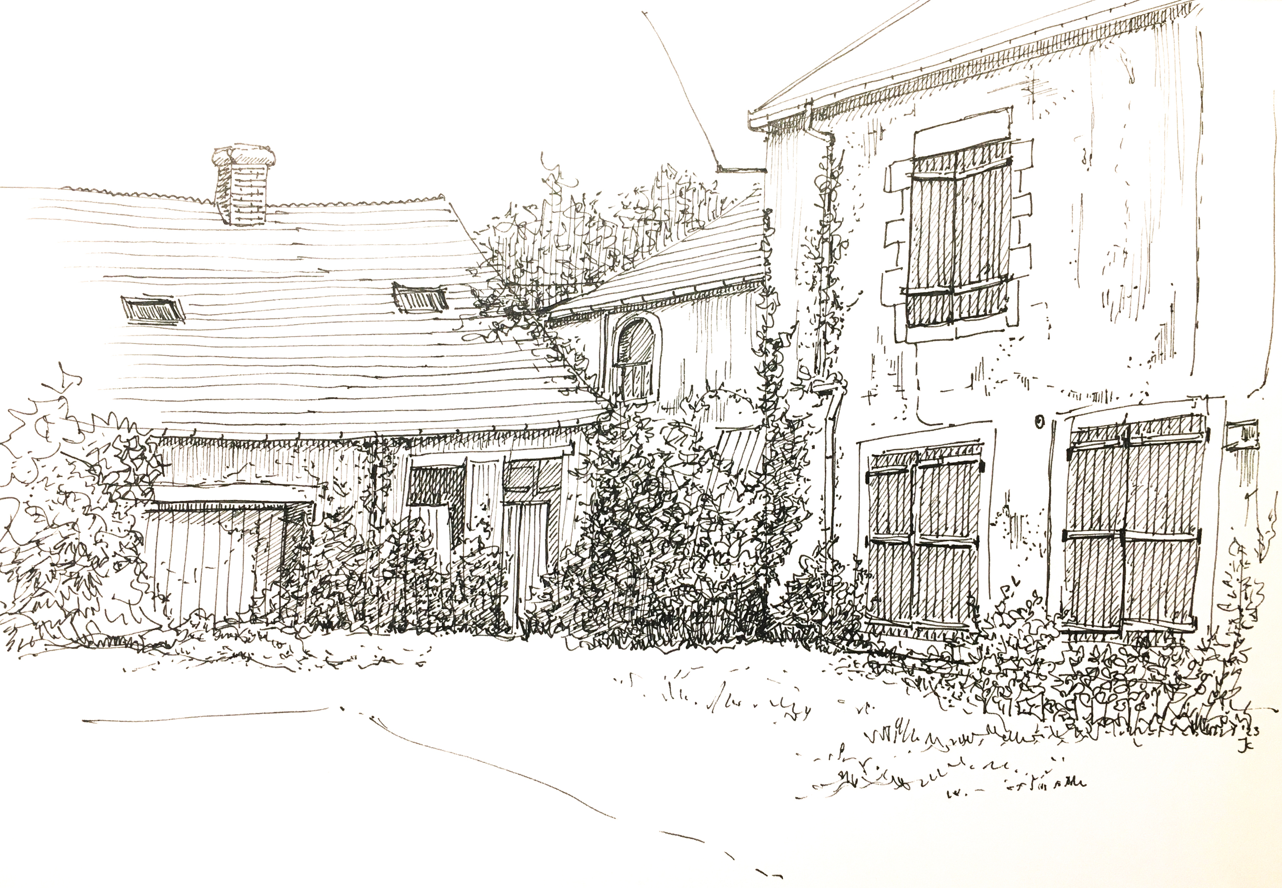 Inkt Briare Frankrijk Binnenplaats Brouwerij Pentekening Realistisch Stadsgezicht
