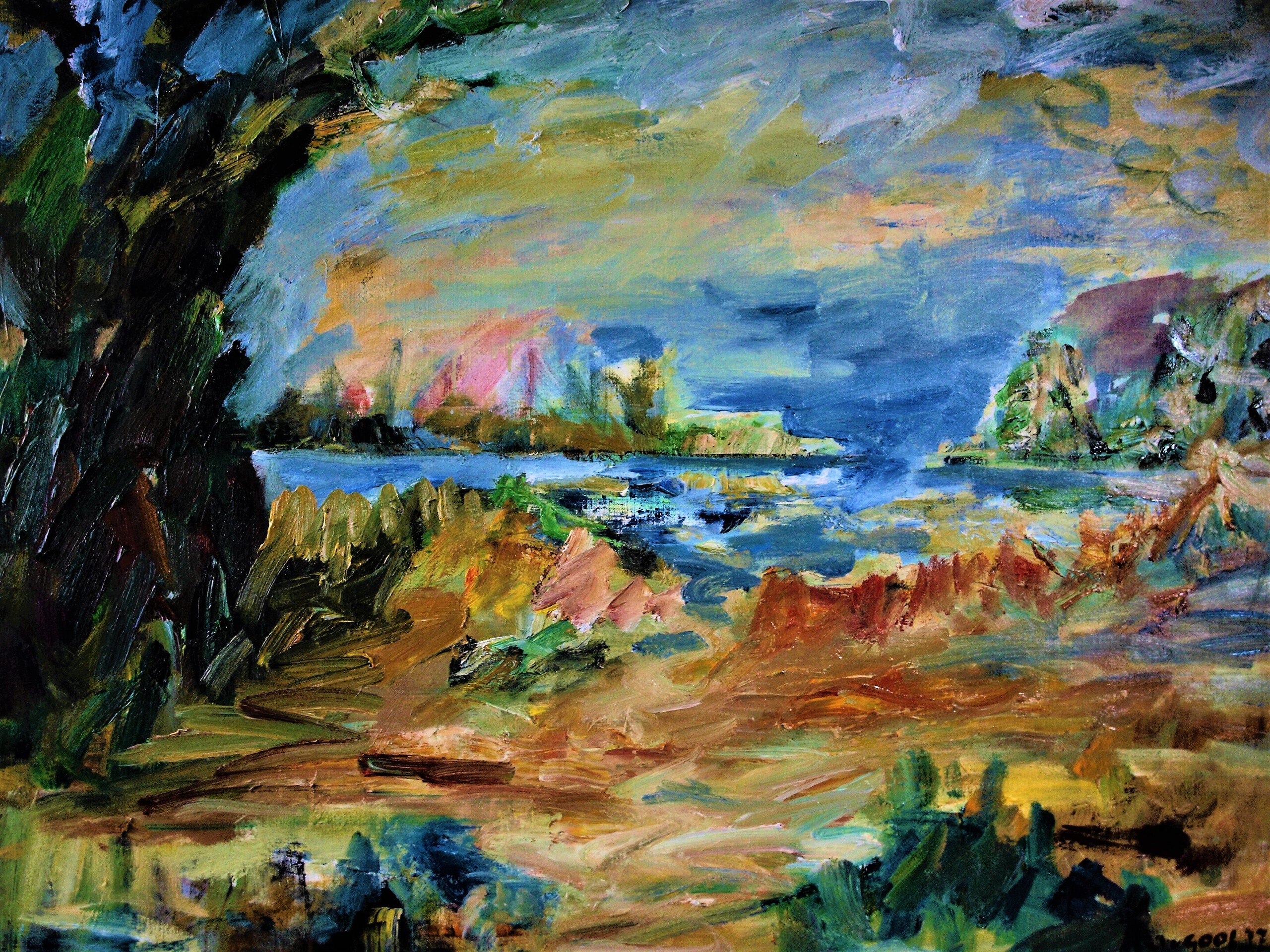 landschap met boom naar fantasie geschilderd met olieverf.