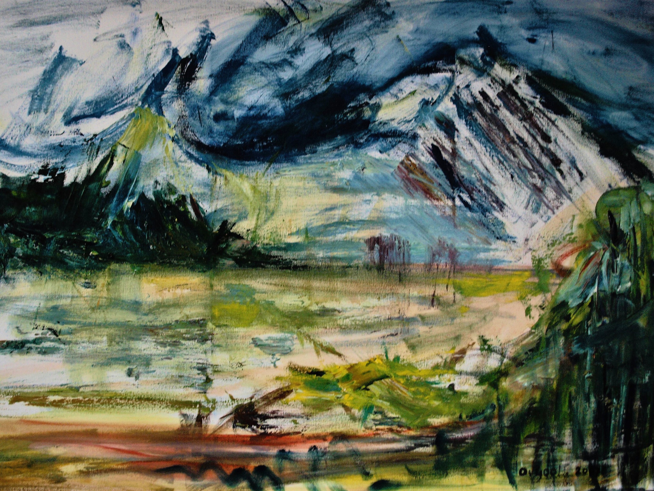 Gechilderd naar klein aquarelletje tijdens vakantie gemaakt aan het Veluwemeer.. 80x120,olieverf op canvas Laureaat van de stad Turnhout