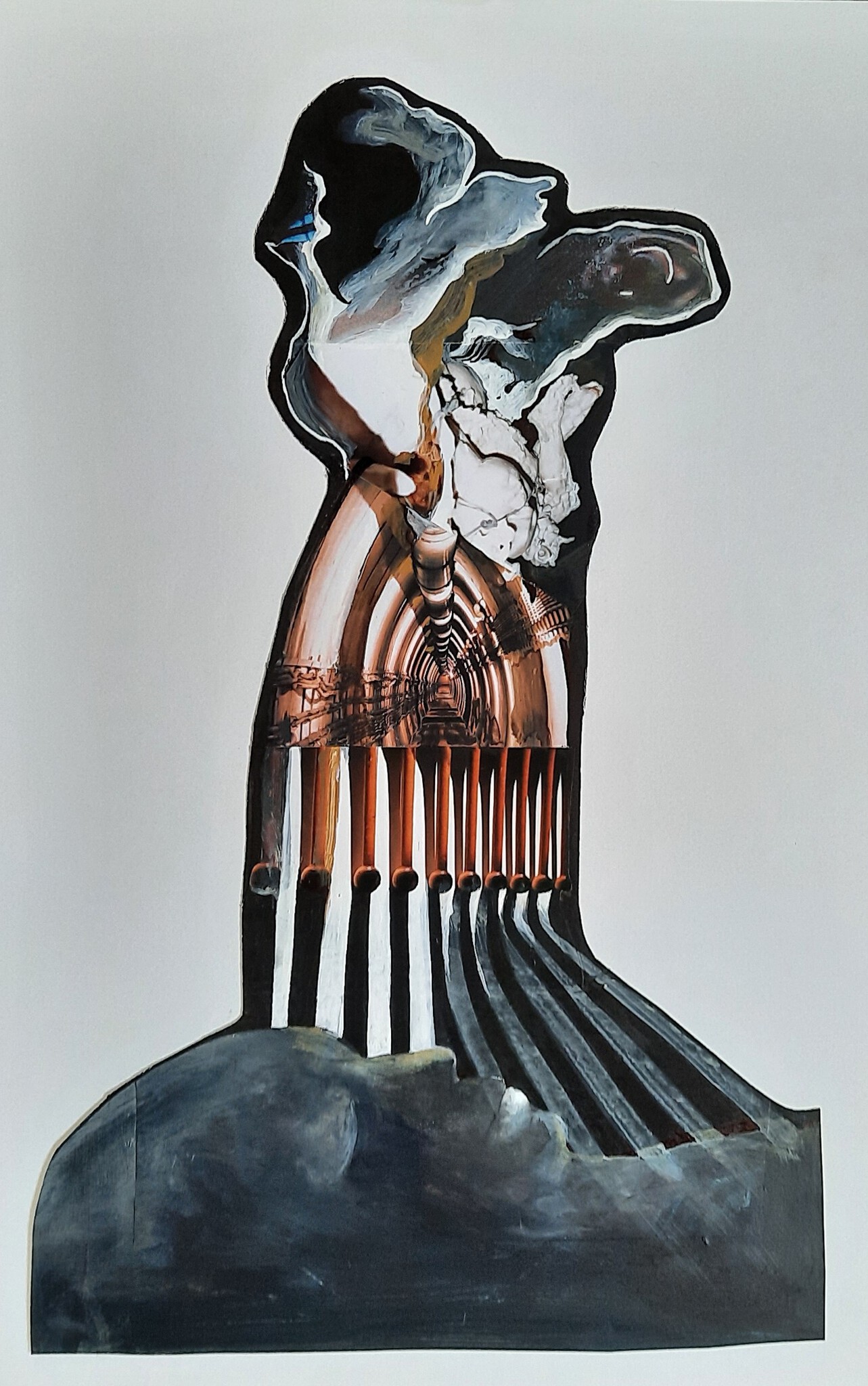 "Dromen" fotocollage met acrylverf op papier.h50xb32 2001