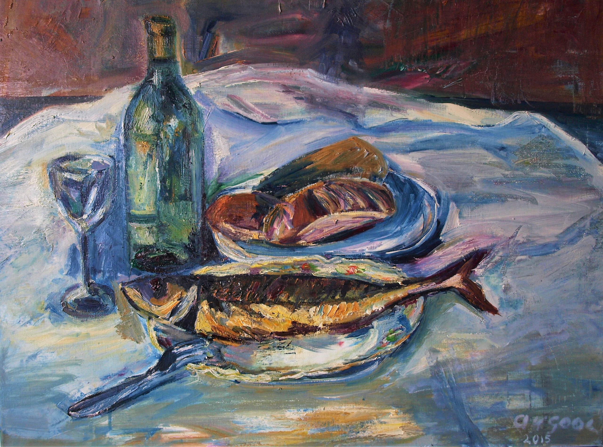 na een visje op de markt gehaald te hebben deze eerst vastgelegd op doek