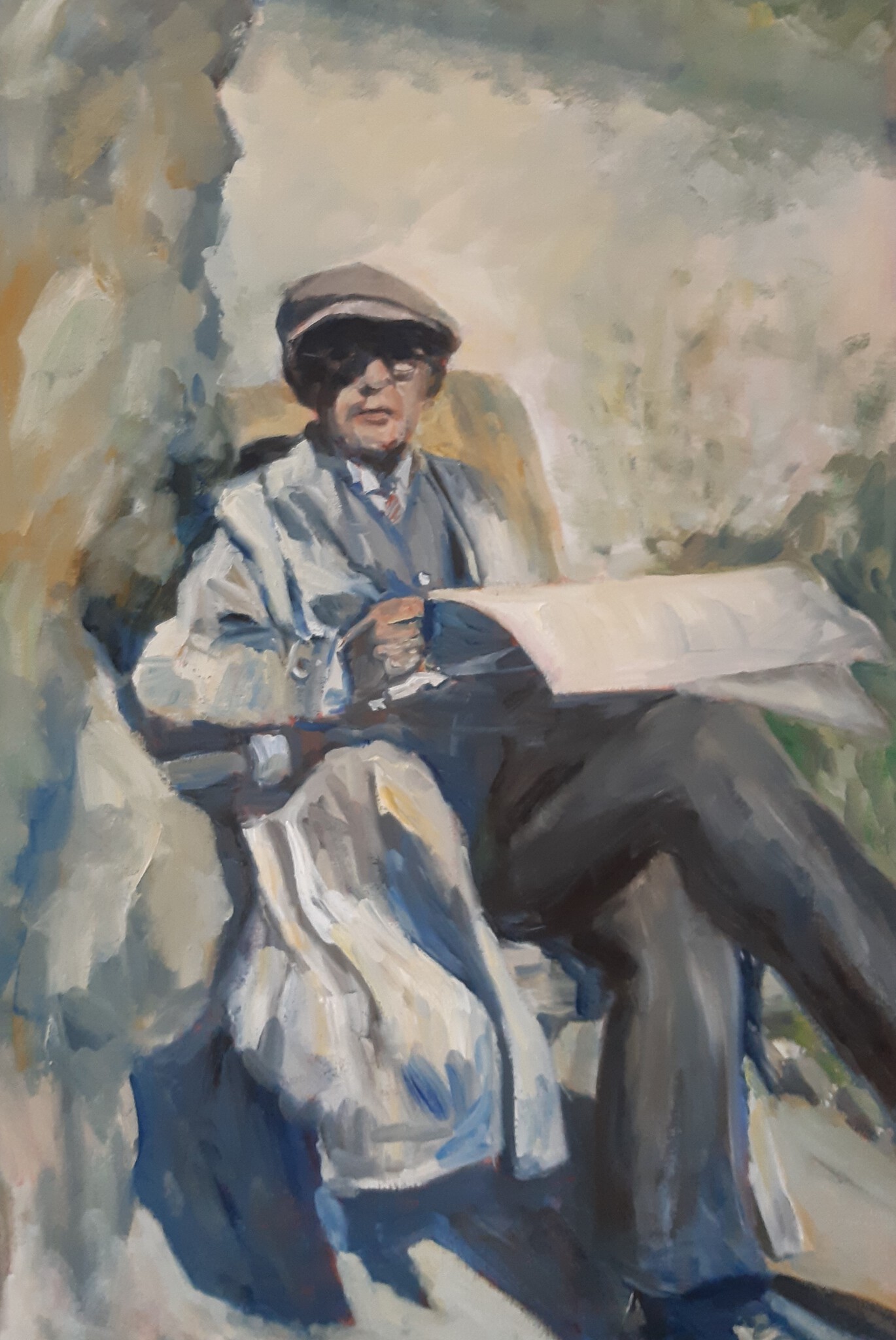 schilderij geschilderd van af kleine foto van oude man