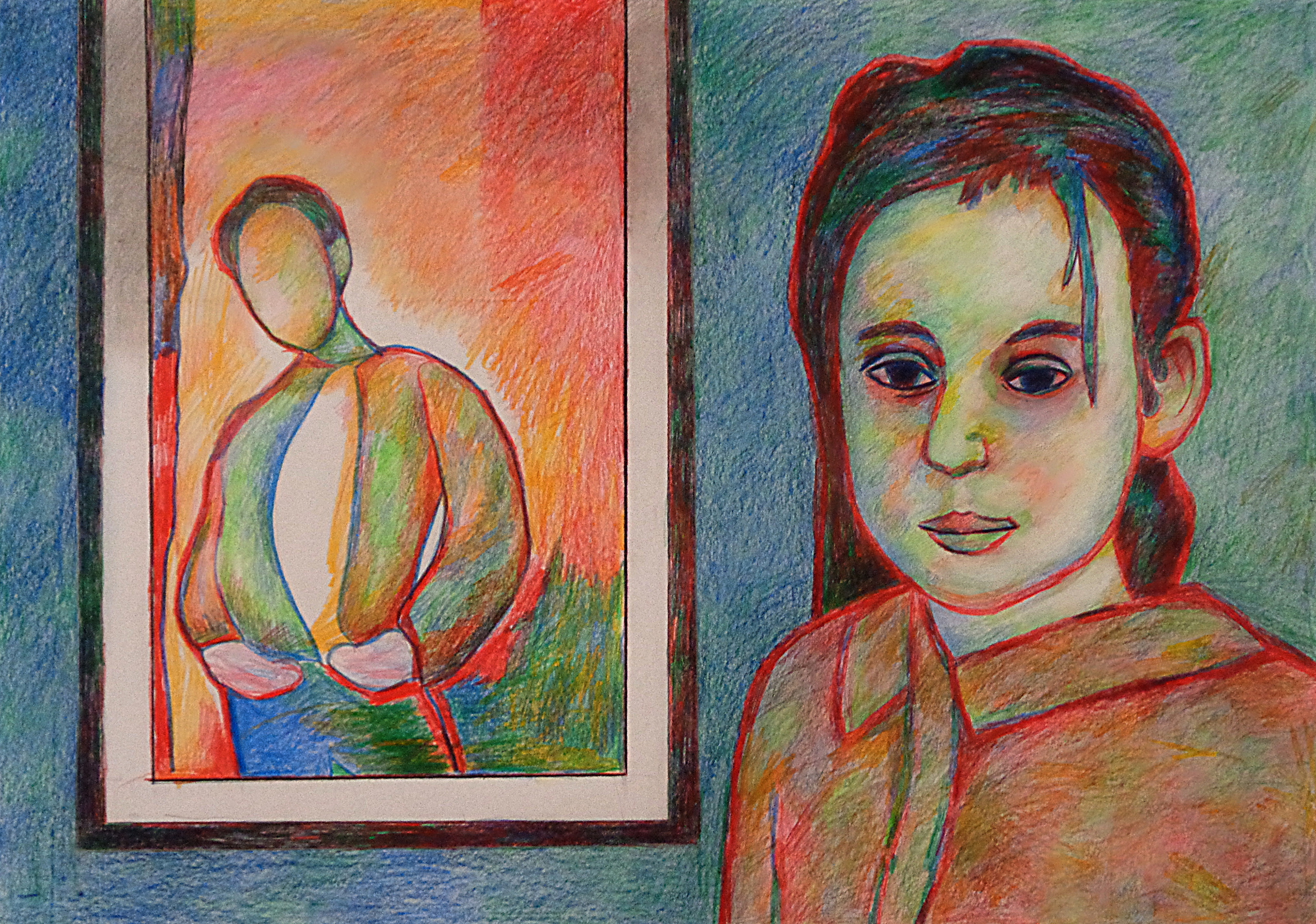 Vrij werk in aquarel potlood