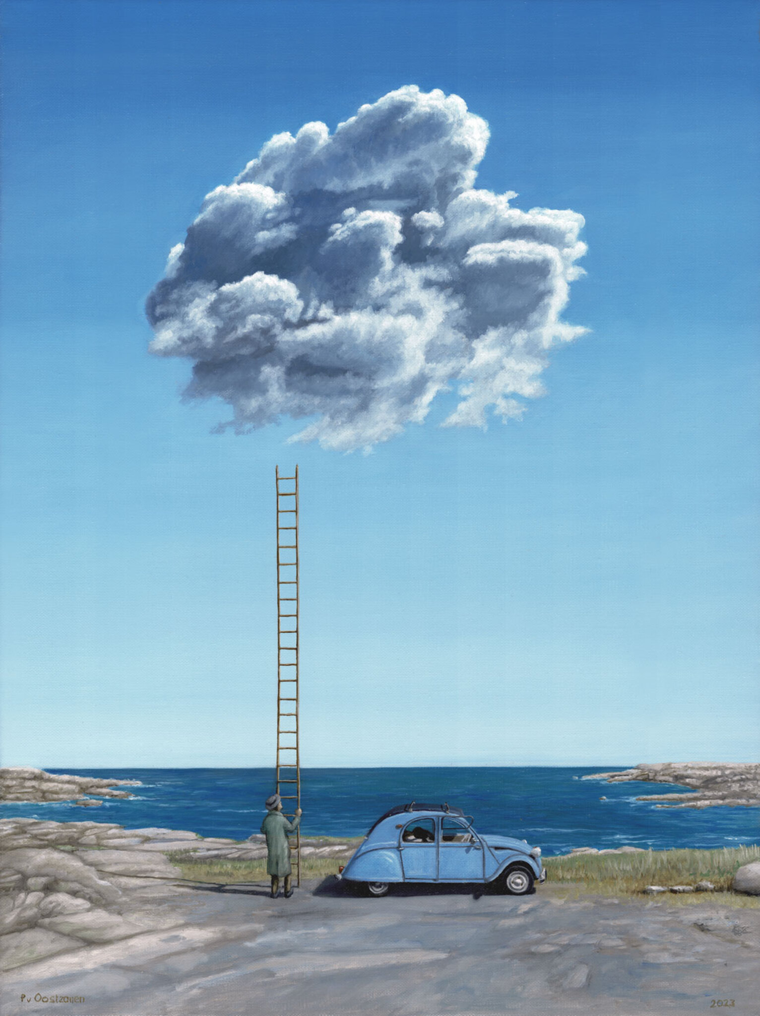 2cv Citroën Wolk Ladder Stand Zee Kust Cost Sky Blauw