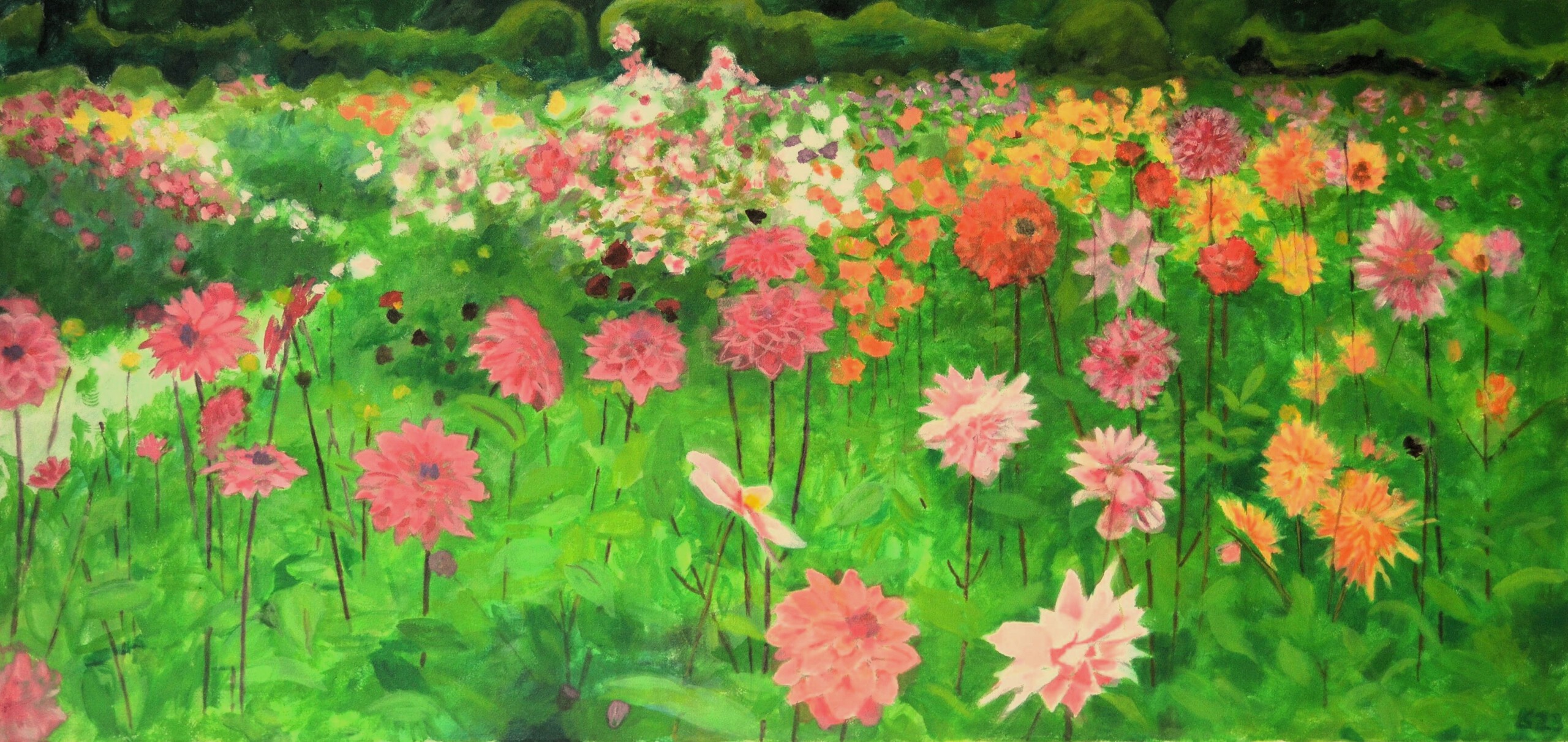 Ik ben docente tekenen en kunstenares. Sinds augustus 2016 gestopt met lesgeven. Ik schilder graag tuinen en bloemen, verwant aan mijn andere bezigheid, tuinieren.