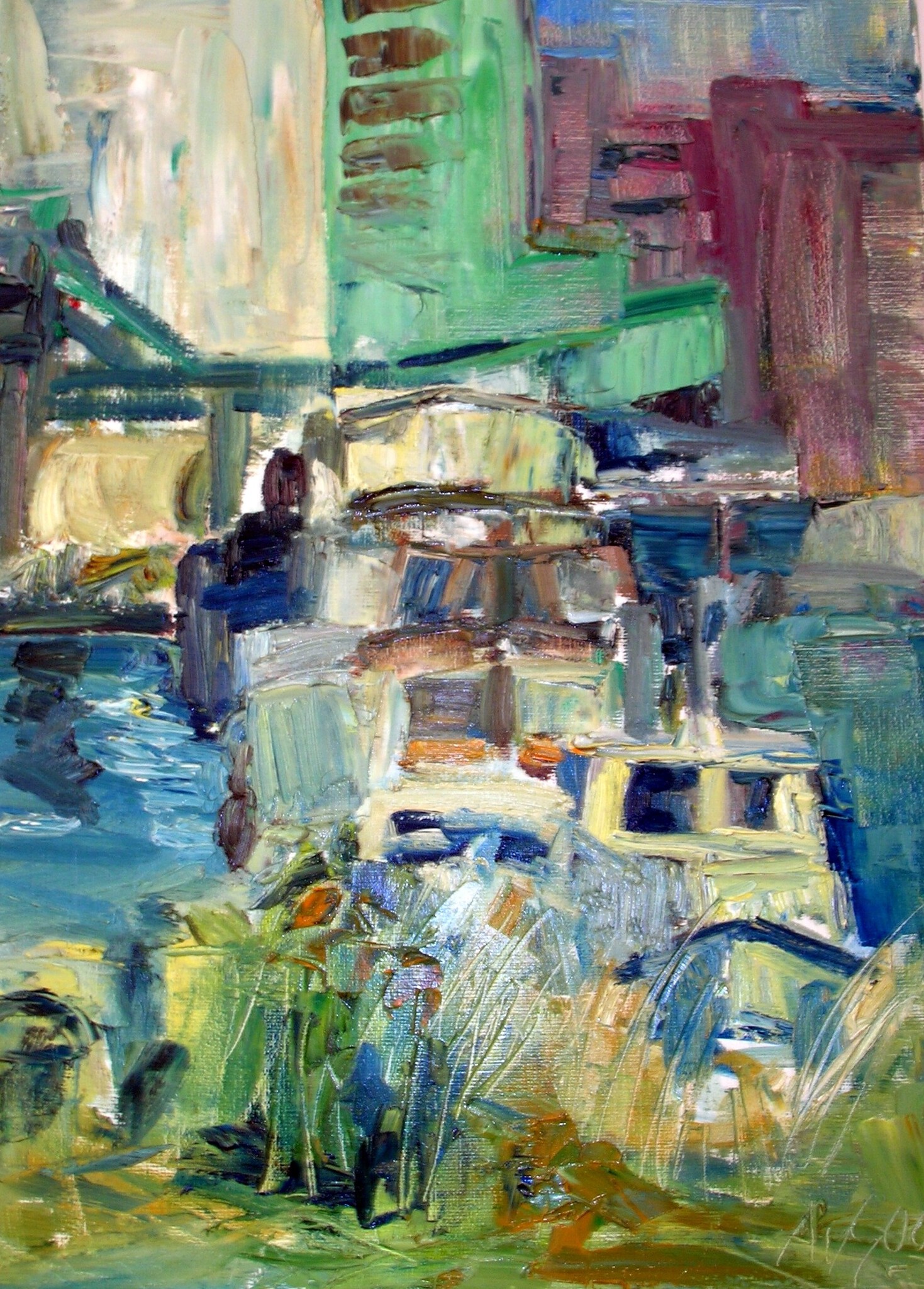 Boten bij Brug I te Turnhout ter plaatse geschilderd.