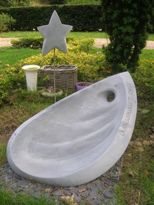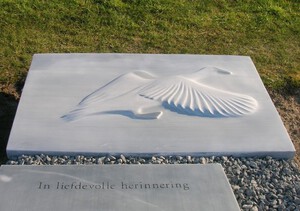 Ageeth van den Oever werkt graag in opdracht, haar specialiteit is het maken van gedenkstenen. Het werk is te zien in haar beeldentuin Sculptuur inZicht.