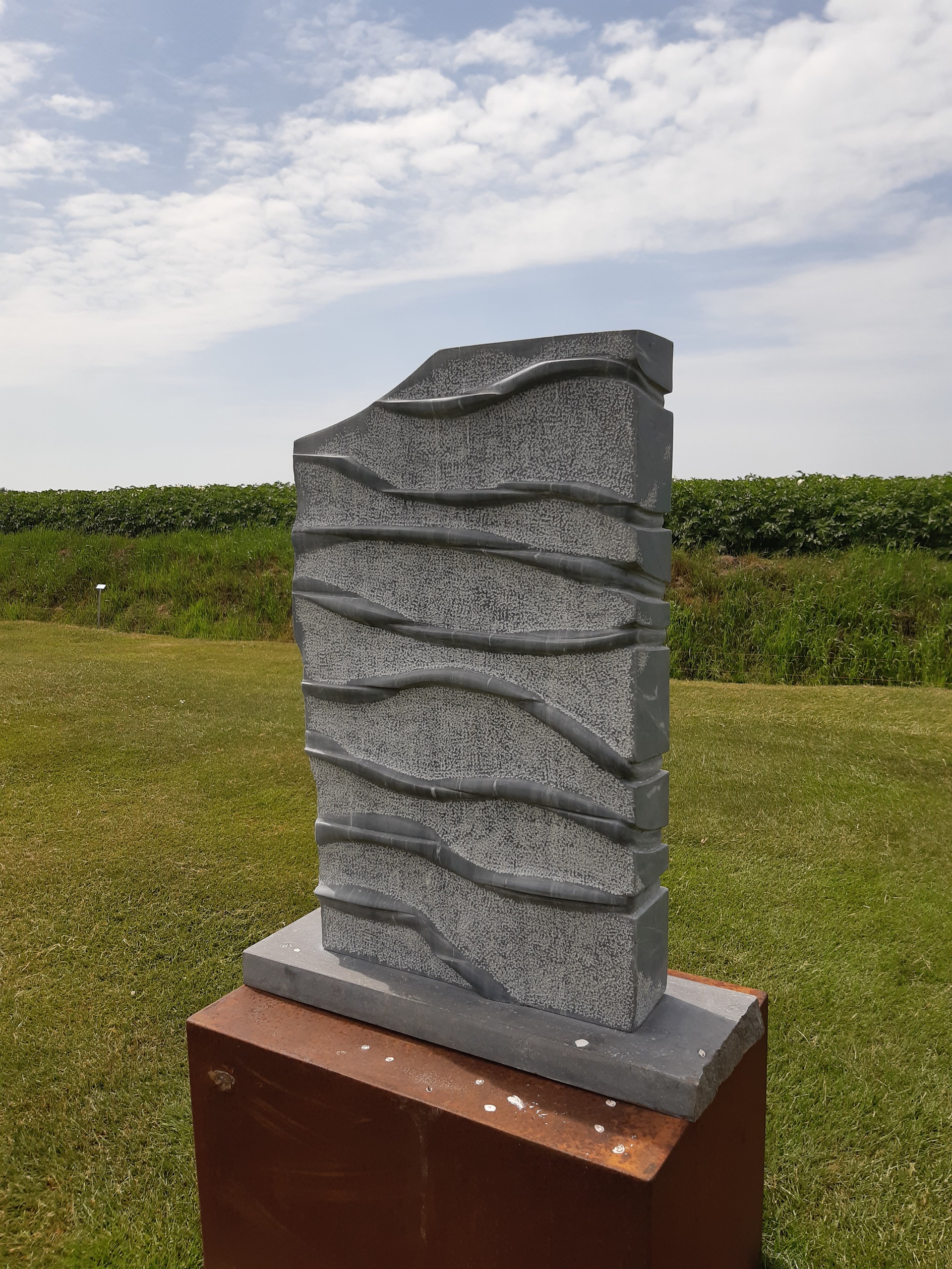 Ageeth van den Oever werkt graag in opdracht, haar specialiteit is het maken van gedenkstenen. Het werk is te zien in haar beeldentuin Sculptuur inZicht.