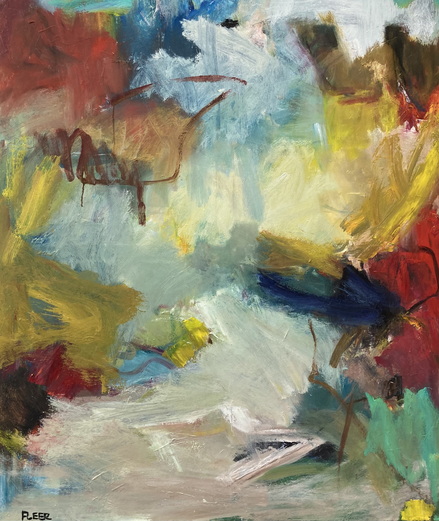 In mijn schilderijen gebruik ik het landschap dat ik tot abstractie bewerk