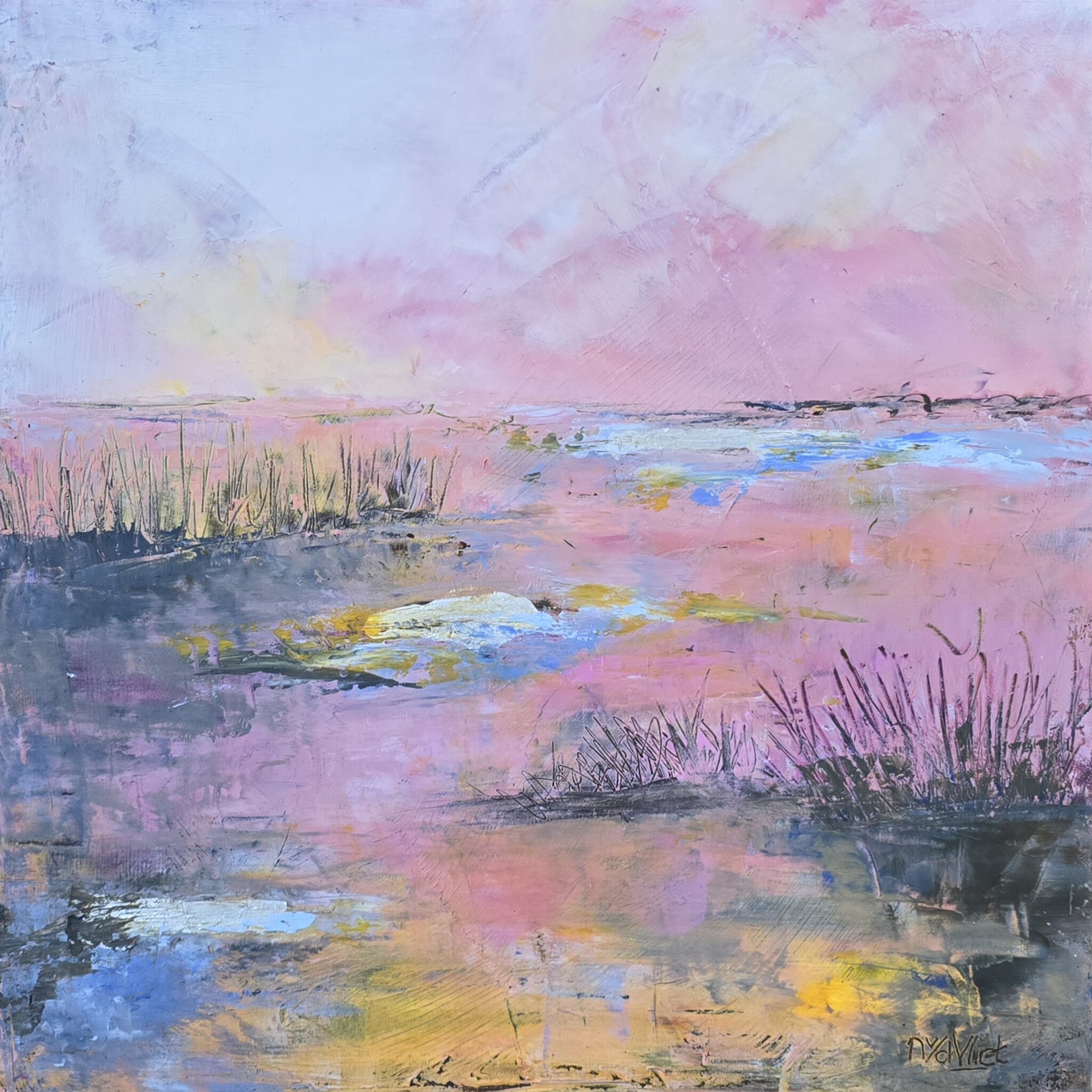 Nanda van der Vliet, autodidact kunstenaar, geboren in Amsterdam, 1959, woonachtig in Zeeland. Schildert met gebruik van diverse technieken en materialen, geïnspireerd door natuur en mens.