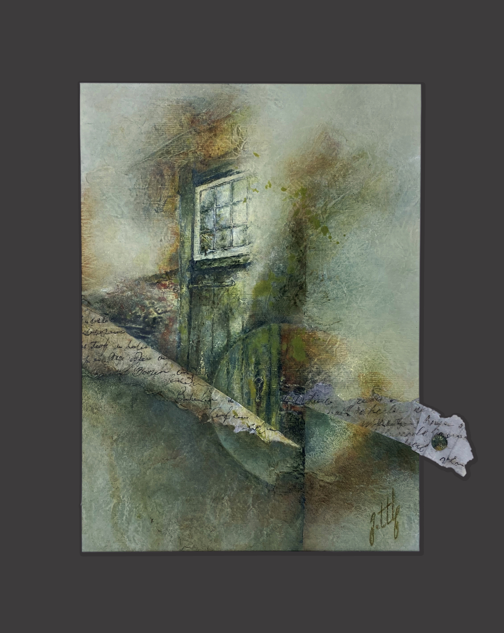 Sporen van voorbije tijd, Erve Menzo veurdeur. Mixed media, papier. Ingelijst, dubbel passe partout, achter glas (niet op deze foto)