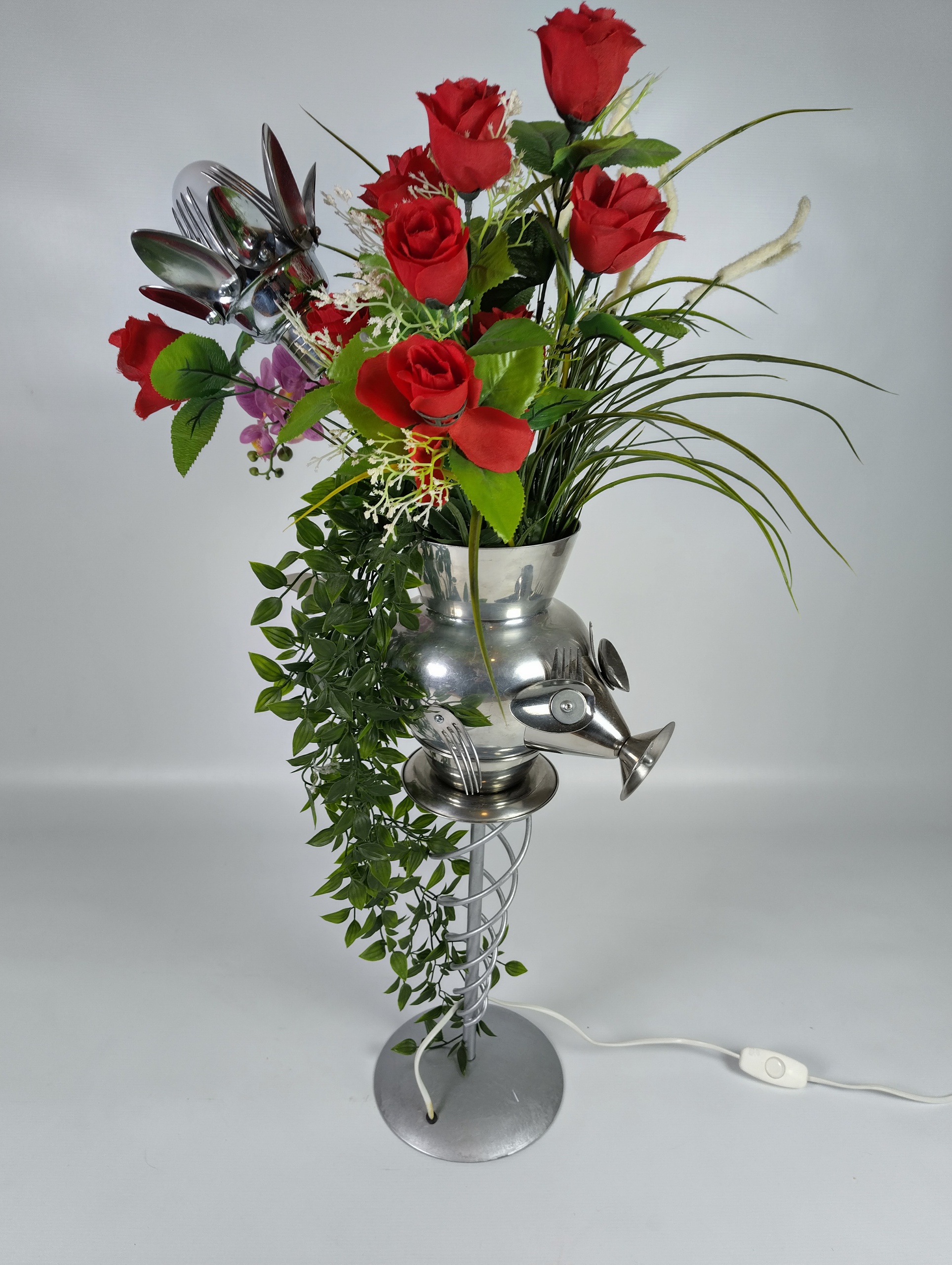 Metalen lamp met kunstbloemen