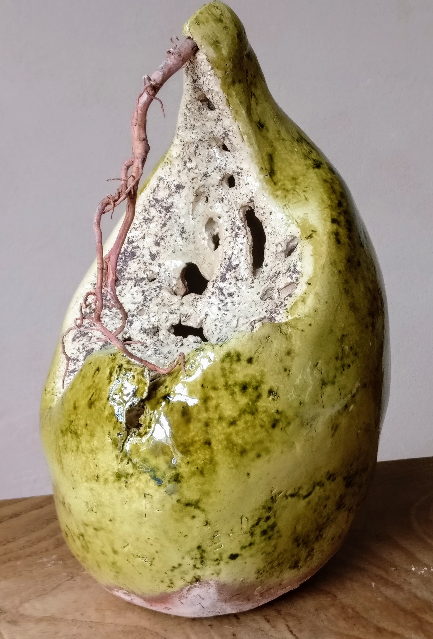 Ik maak keramische handvormen vaak gecombineerd met andere materialen.